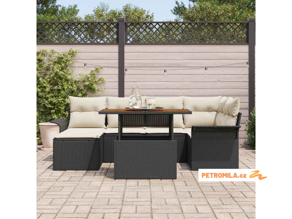 Sada zahradních pohovek s polštářem 7 pcs Černá a krémová