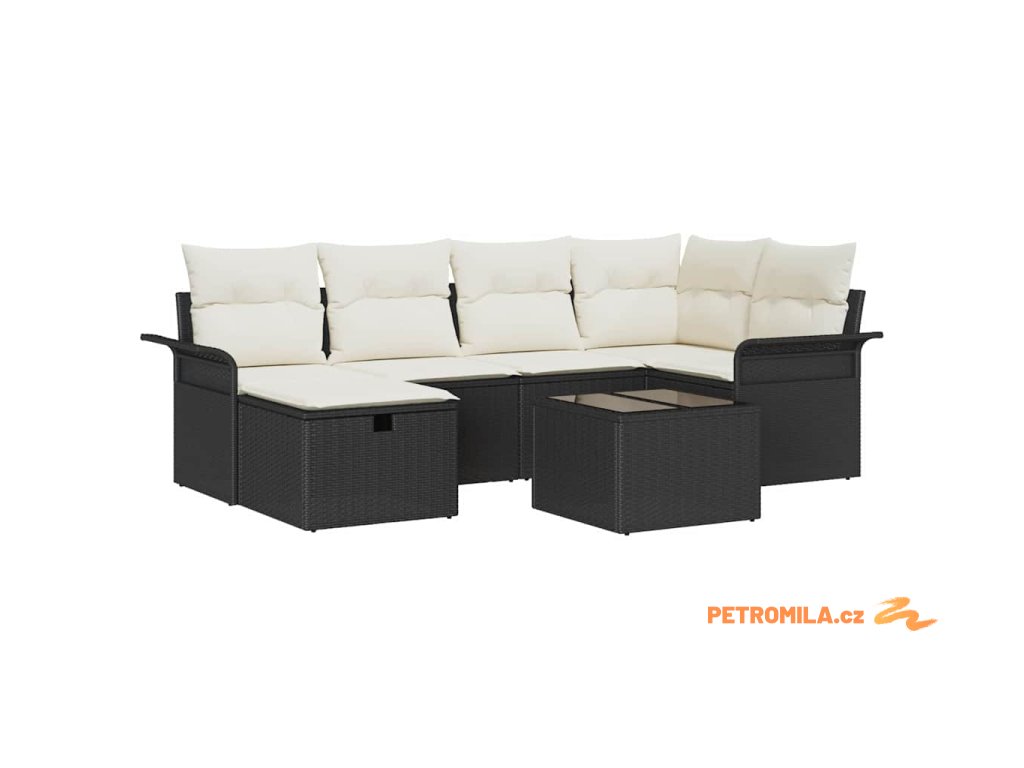 Sada zahradních pohovek s polštářem 7 pcs Černá a krémová