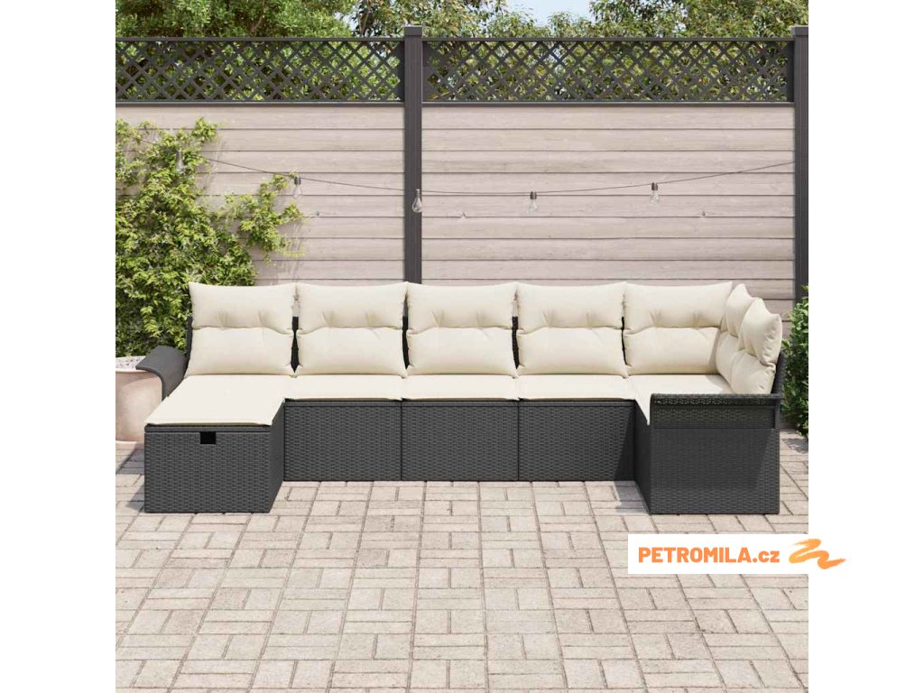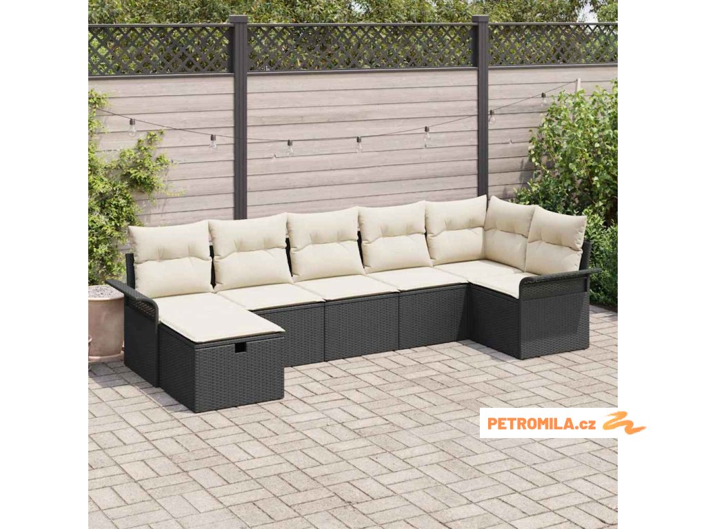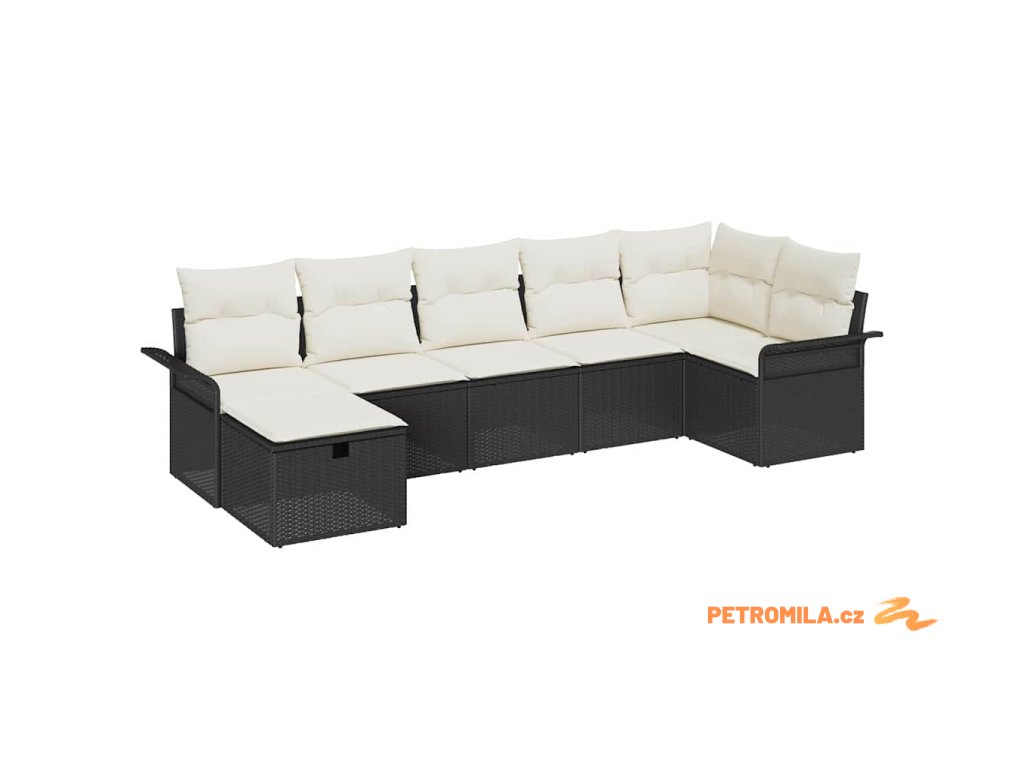 Sada zahradních pohovek s polštářem 7 pcs Černá Poly ratan