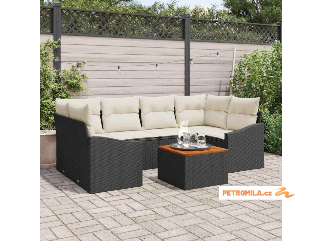 Sada zahradních pohovek s polštářem 7 pcs Černá polyratan