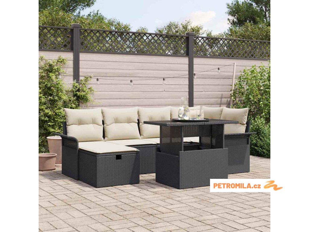 Sada zahradních pohovek s polštářem 7 pcs Černá polyratan