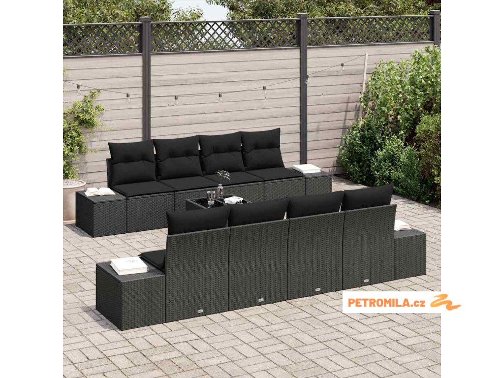 Sada zahradních pohovek s polštářem 7 pcs Černá polyratan