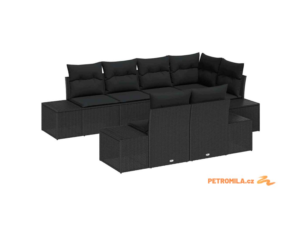 Sada zahradních pohovek s polštářem 7 pcs Černá polyratan