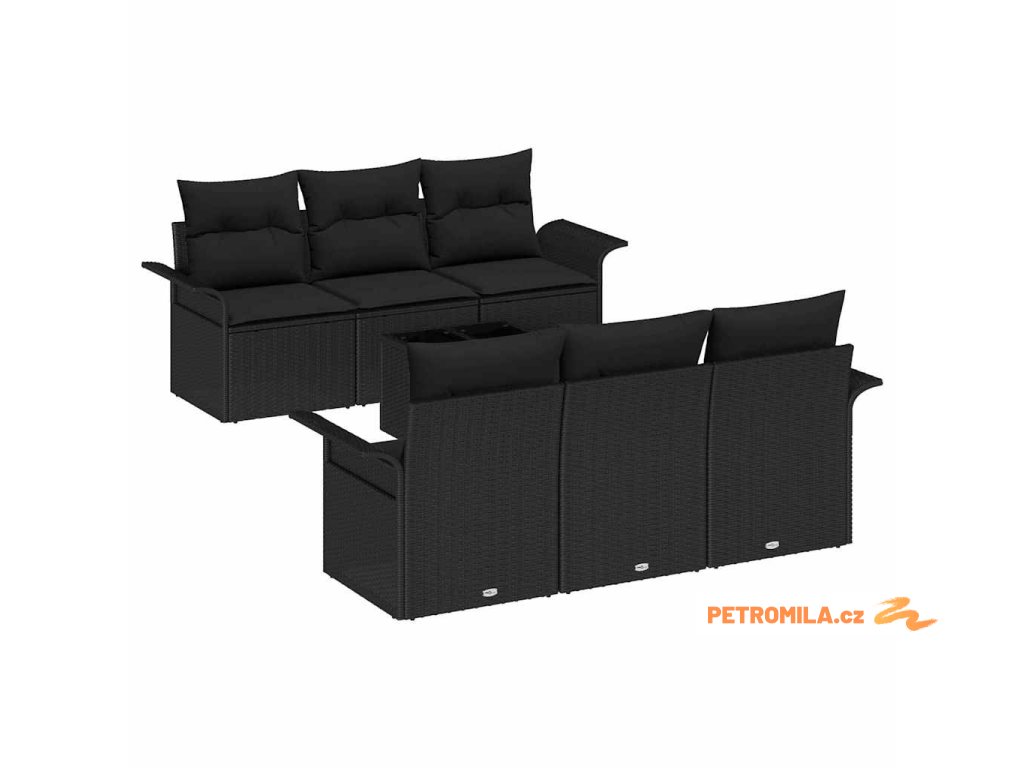 Sada zahradních pohovek s polštářem 7 pcs Černá polyratan