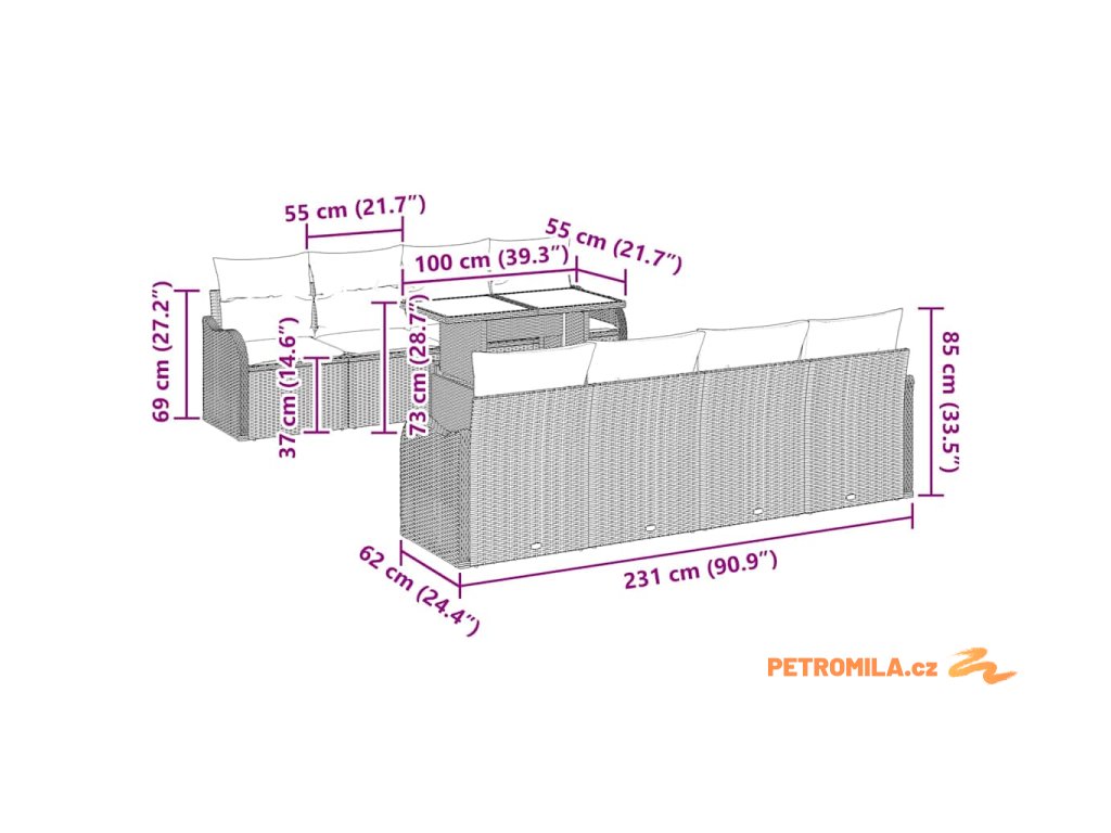 Sada zahradních pohovek s polštářem 9 pcs Béžová Poly ratan