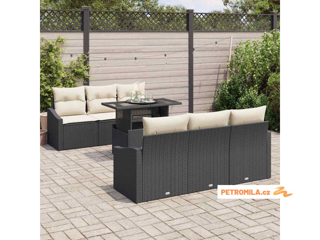 Sada zahradních pohovek s polštářem 7 pcs Černá polyratan