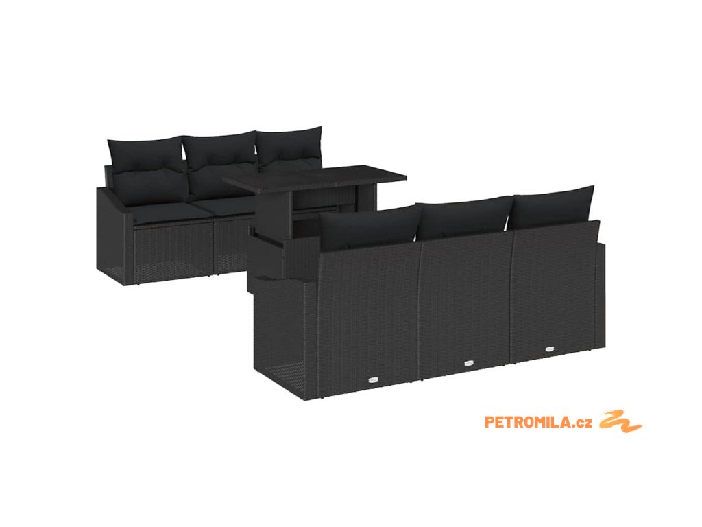 Sada zahradních pohovek s polštářem 7 pcs Černá polyratan