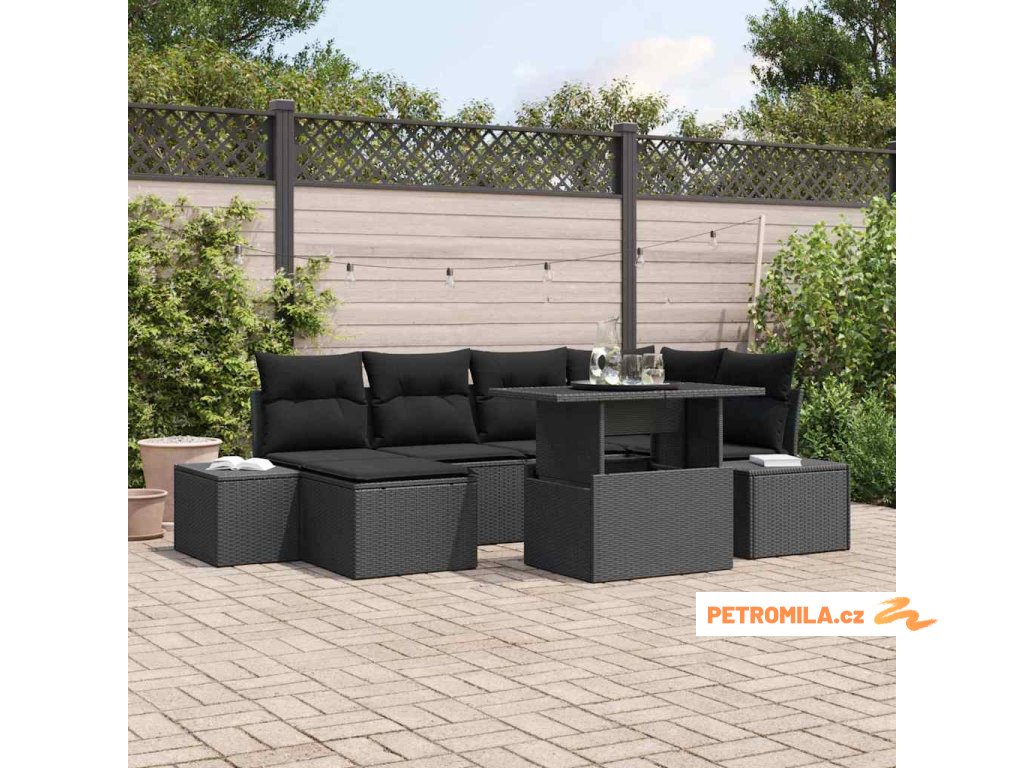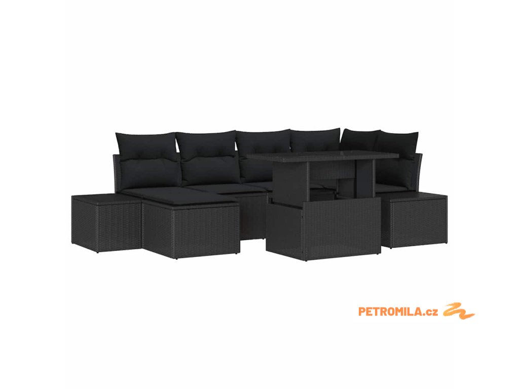 Sada zahradních pohovek s polštářem 7 pcs Černá polyratan
