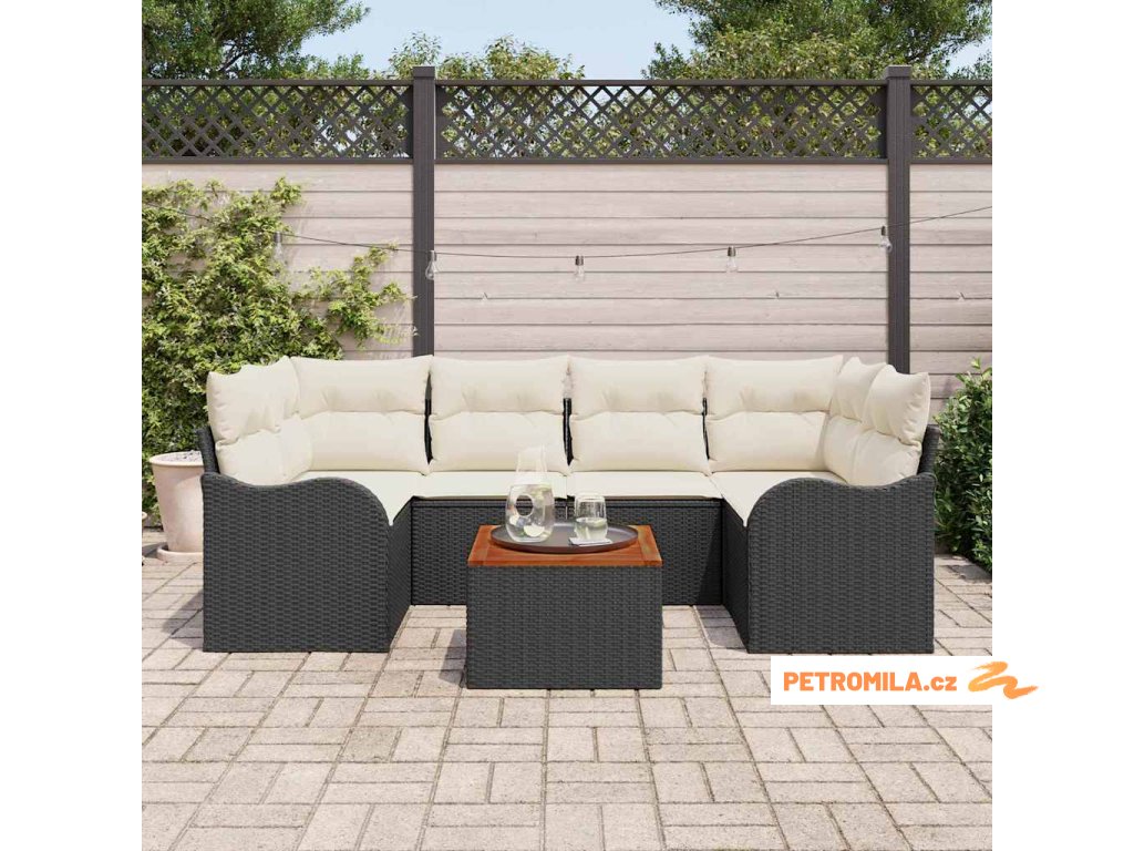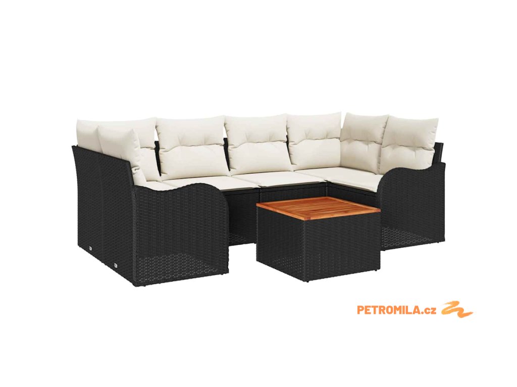 Sada zahradních pohovek s polštářem 7 pcs Černá polyratan