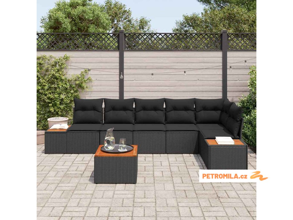 Sada zahradních pohovek 8 pcs Černá polyratan