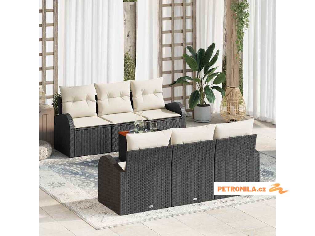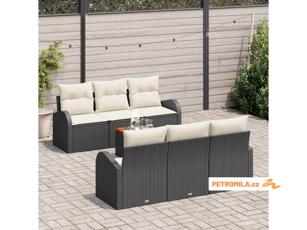 Sada zahradních pohovek s polštářem 7 pcs Černá polyratan
