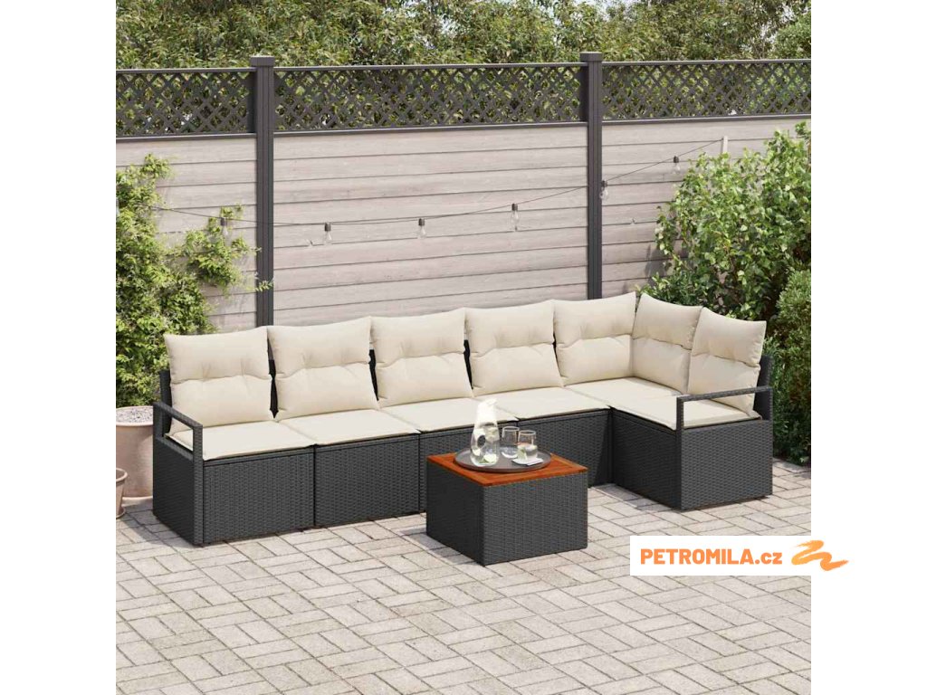 Sada zahradních pohovek s polštářem 7 pcs Černá polyratan