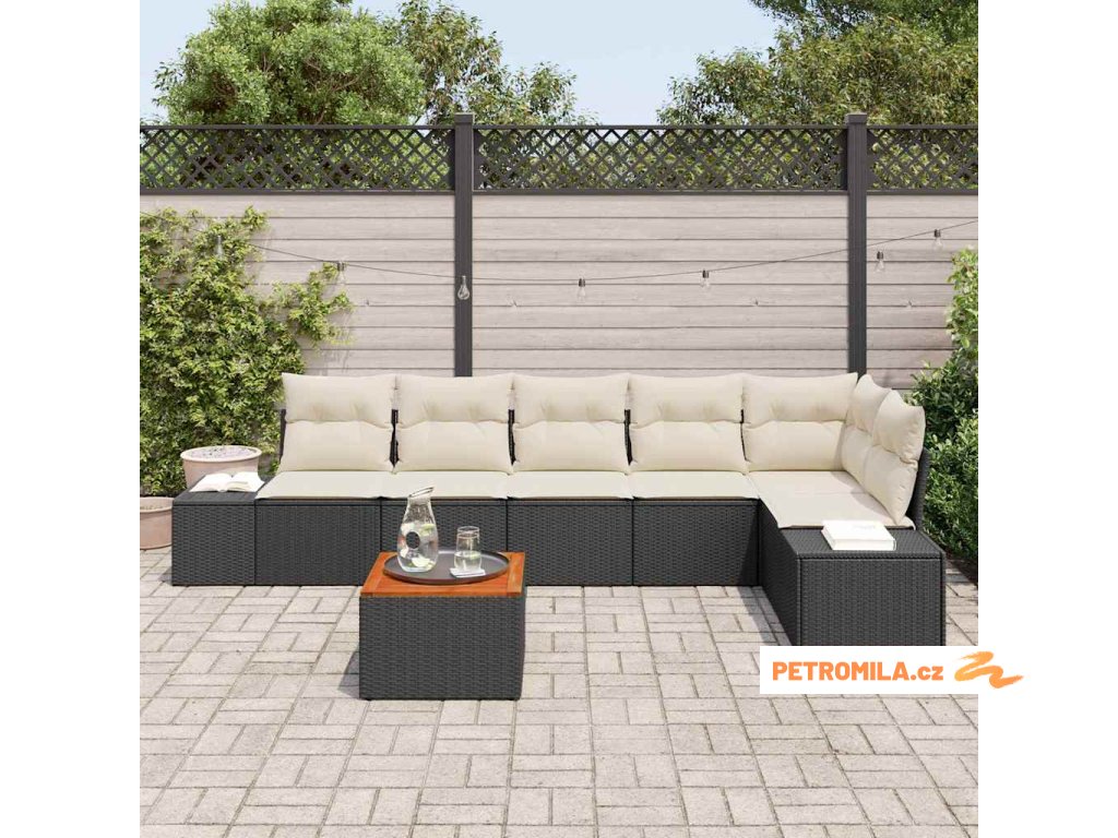 Sada zahradních pohovek s polštářem 7 pcs Černá polyratan