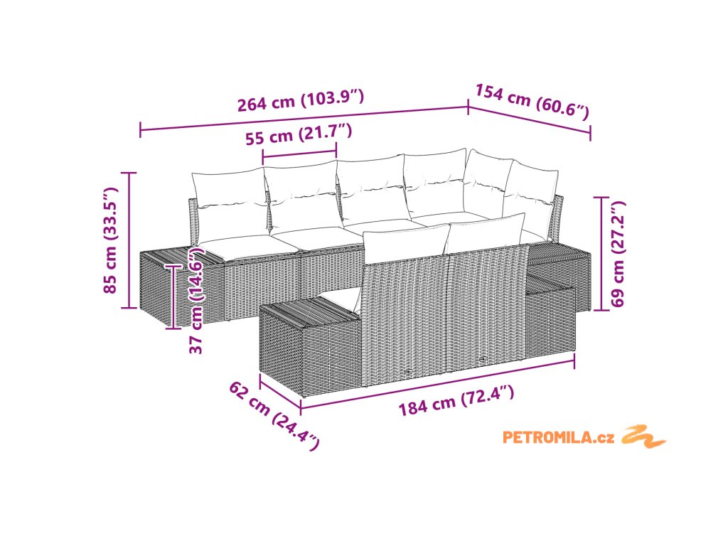 - 4 x boční pohovka: 55 x 55 x 37 cm (DxŠxV)