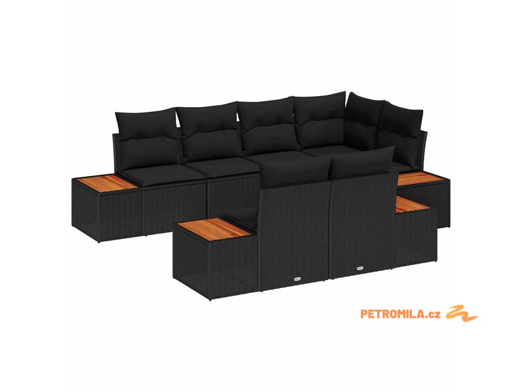 Sada zahradních pohovek s polštářem 7 pcs Černá polyratan
