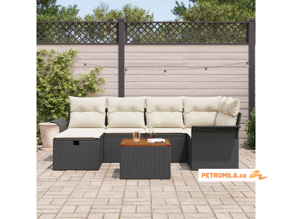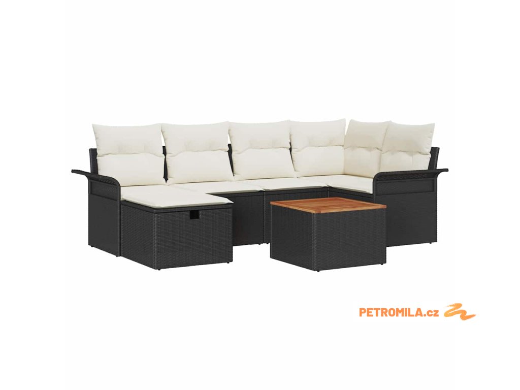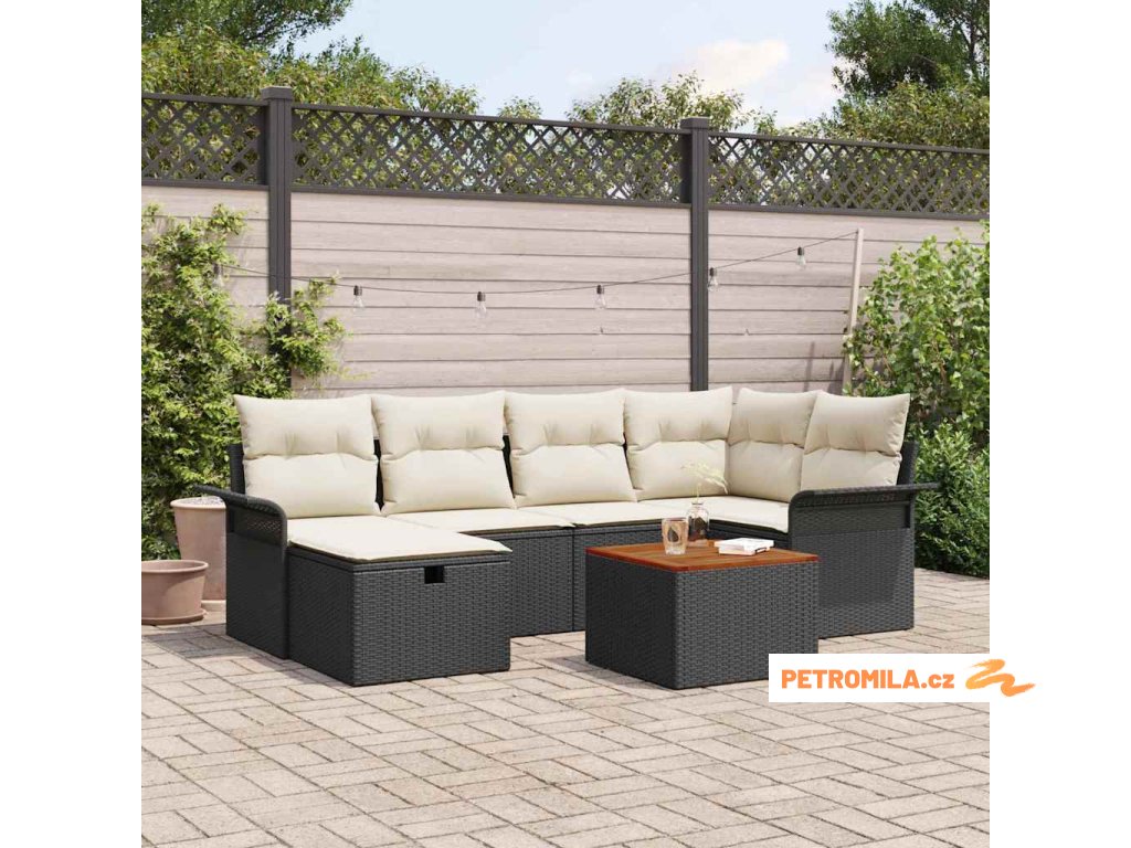 Sada zahradních pohovek s polštářem 7 pcs Černá polyratan