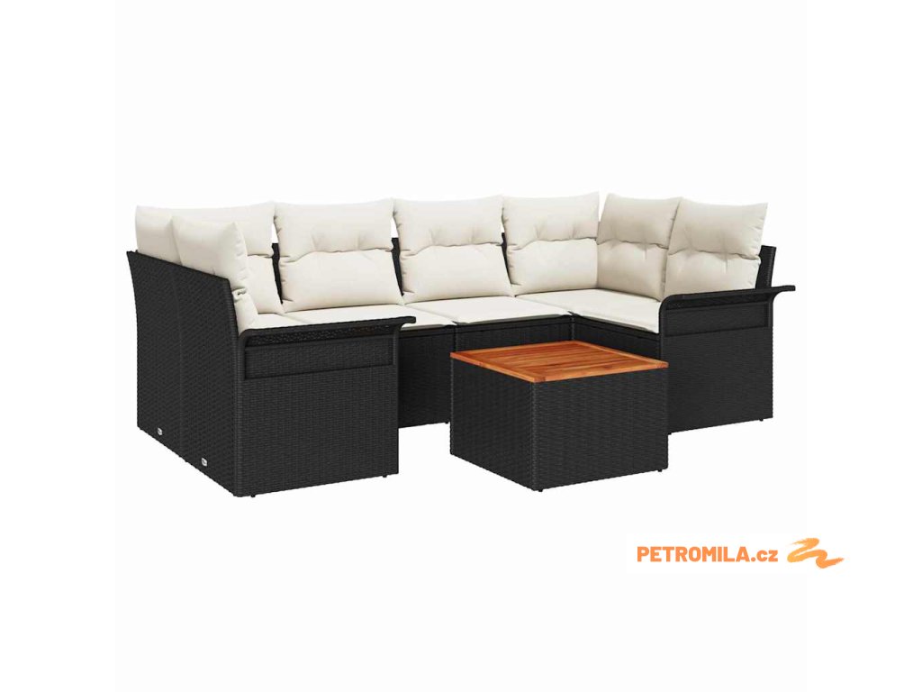 Sada zahradních pohovek s polštářem 7 pcs Černá polyratan