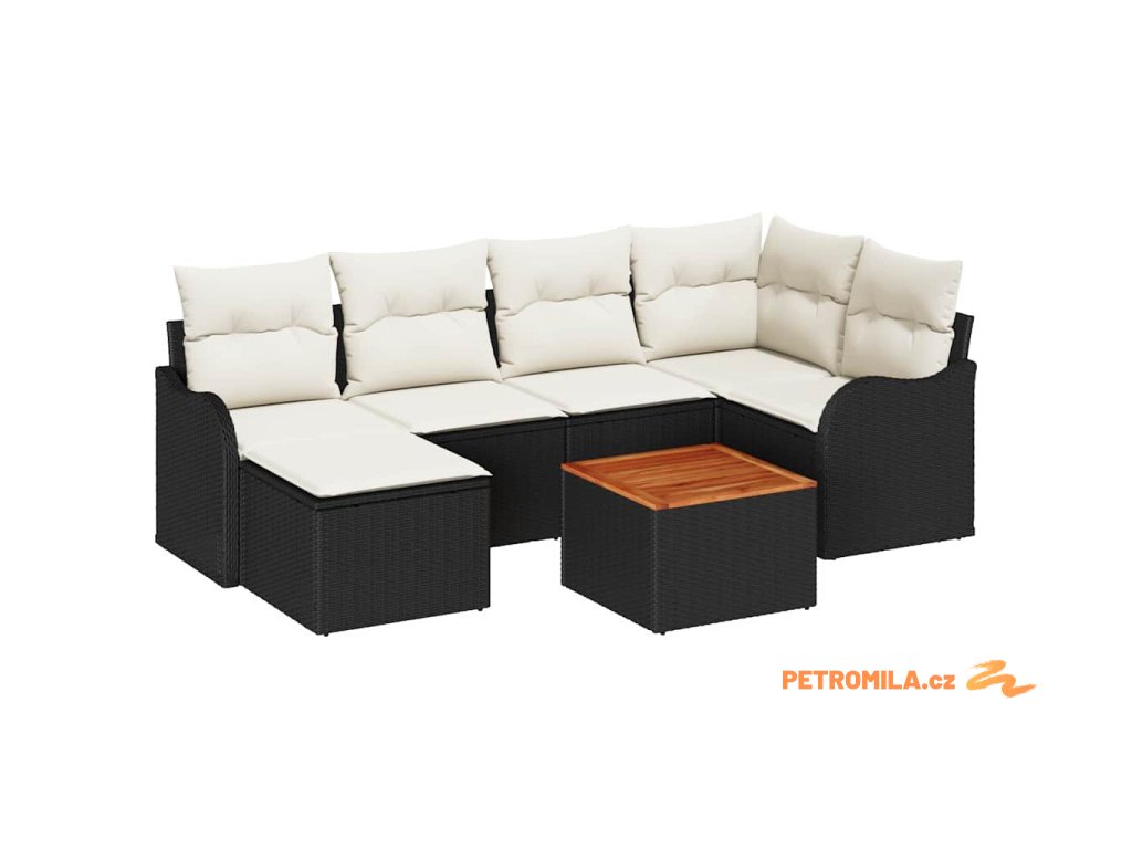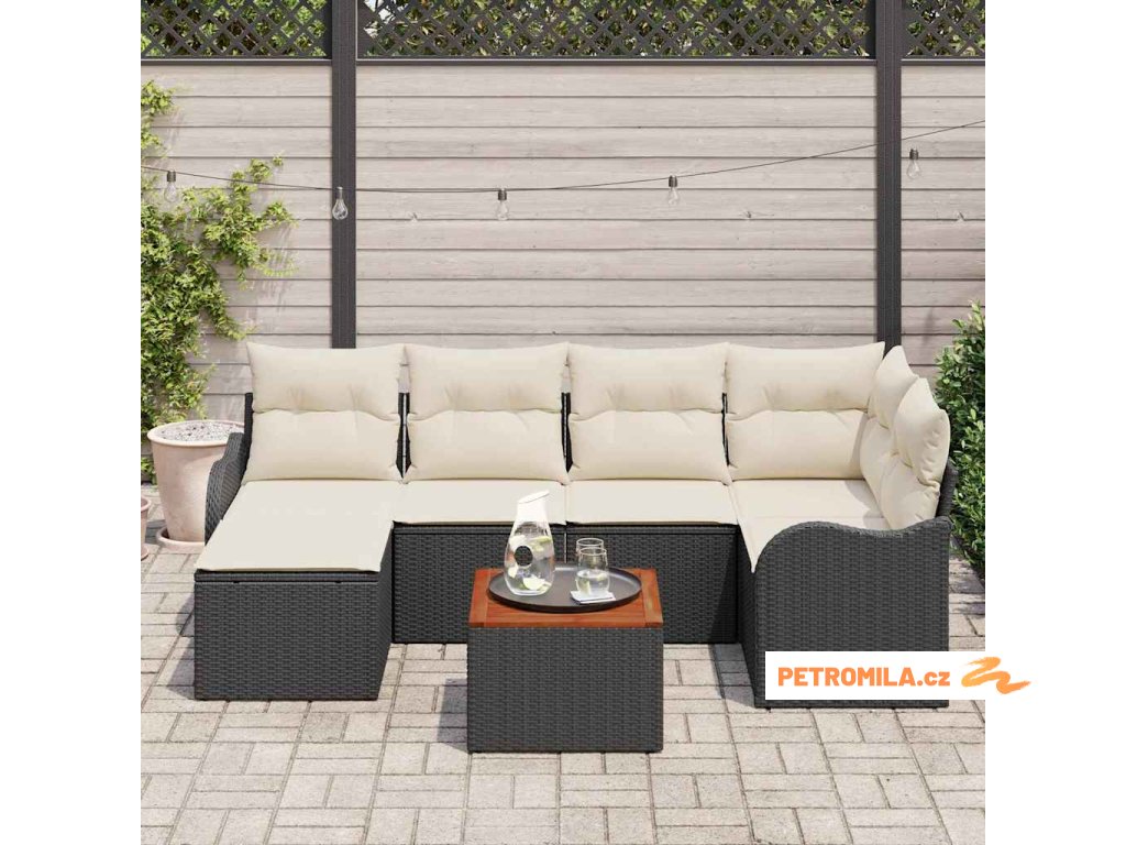 Sada zahradních pohovek s polštářem 7 pcs Černá polyratan