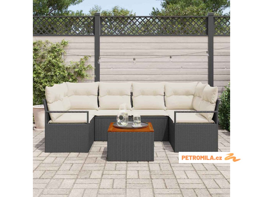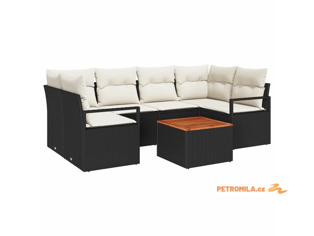 Sada zahradních pohovek s polštářem 7 pcs Černá polyratan