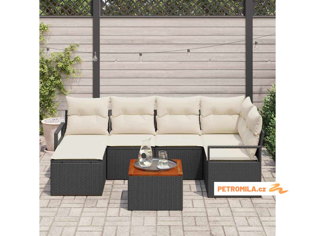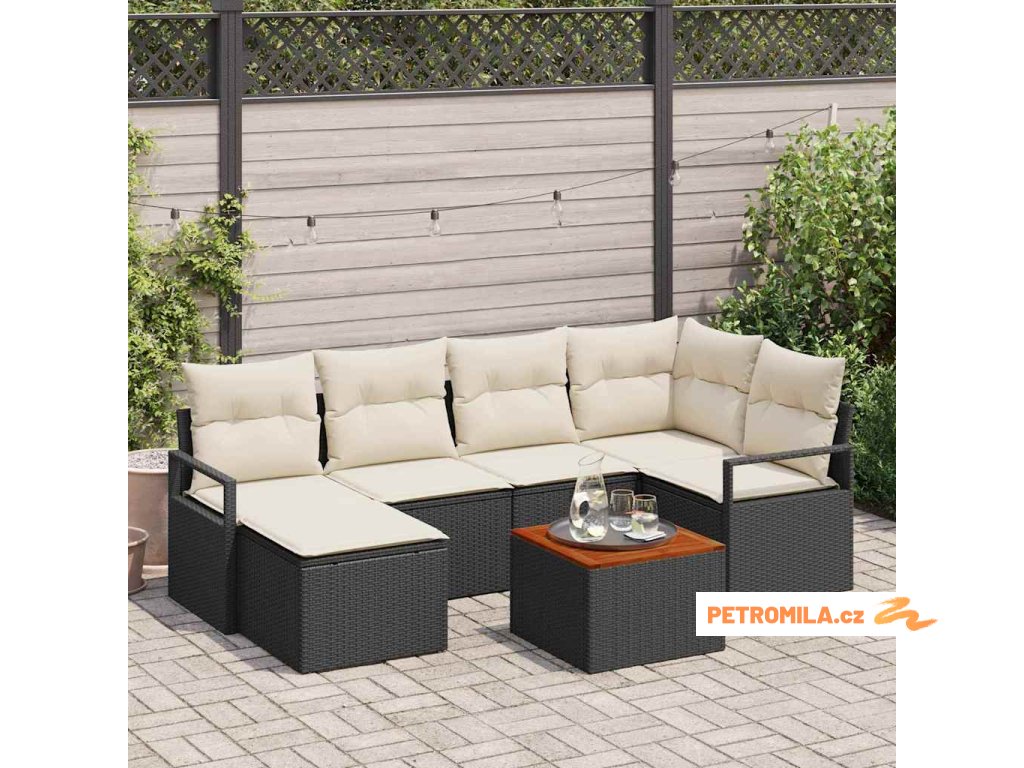 Sada zahradních pohovek s polštářem 7 pcs Černá polyratan
