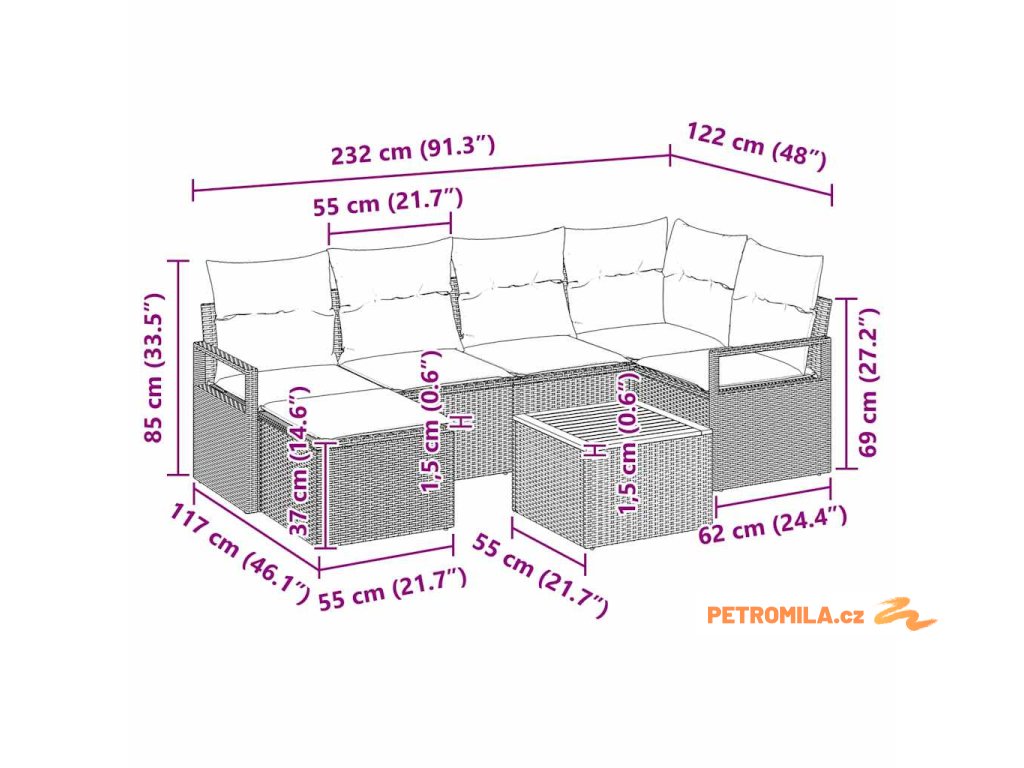 - Kompletní komponenty: Souprava zahrnuje dvě středové sedačky, rohové sedadlo, dvě křesla, stoličku a stůl pro zahradu. Každý kousek je navržen pro pohodlí a lehké manipulace, takže si vytvoříš ideální uspořádání podle potřeby. Polyratanová opěrka a měkké polštáře ti zaručí komfort.