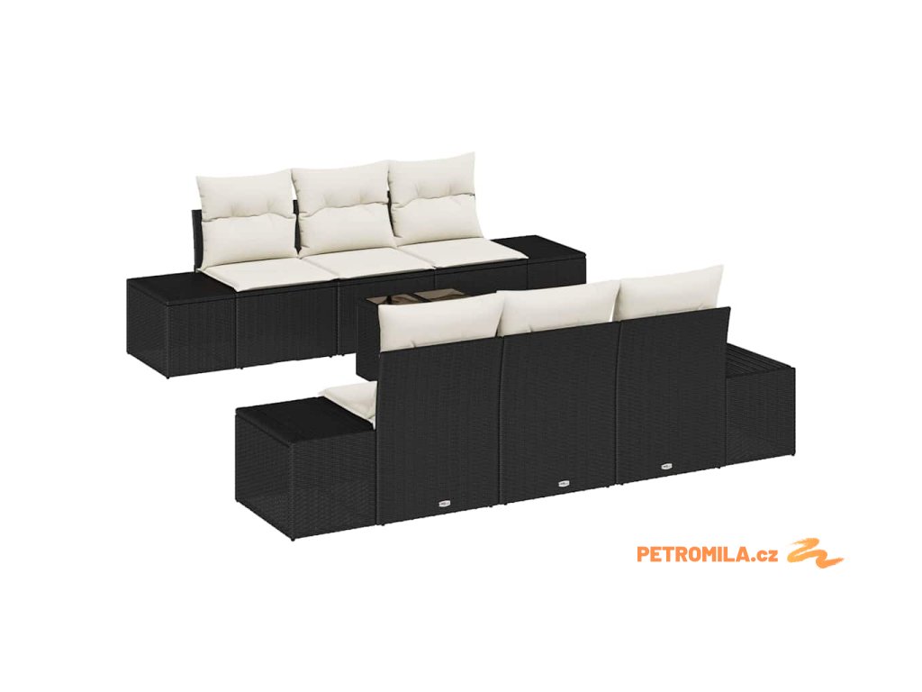 Sada zahradních pohovek s polštářem 7 pcs Černá polyratan
