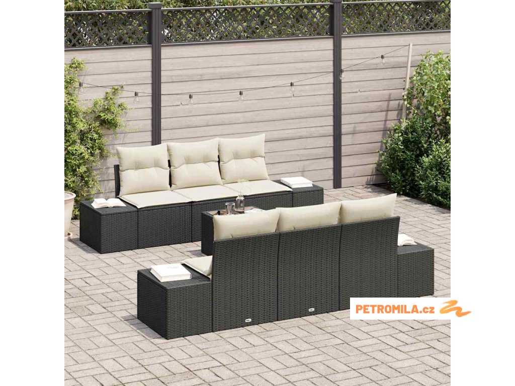 Sada zahradních pohovek s polštářem 6 pcs Černá Poly Ratan