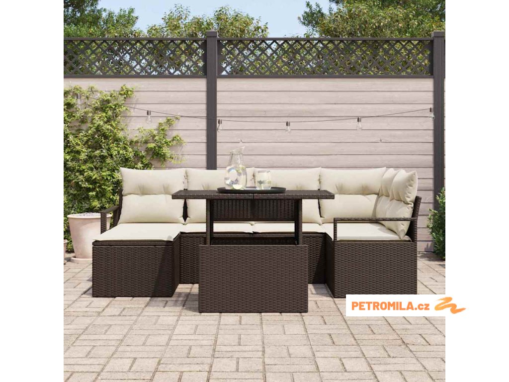 Sada zahradních pohovek s polštářem 7 pcs Hnědá a krémová