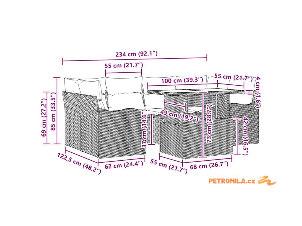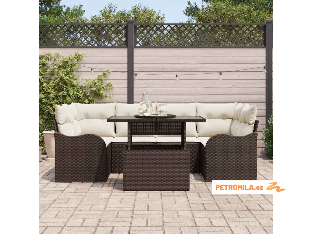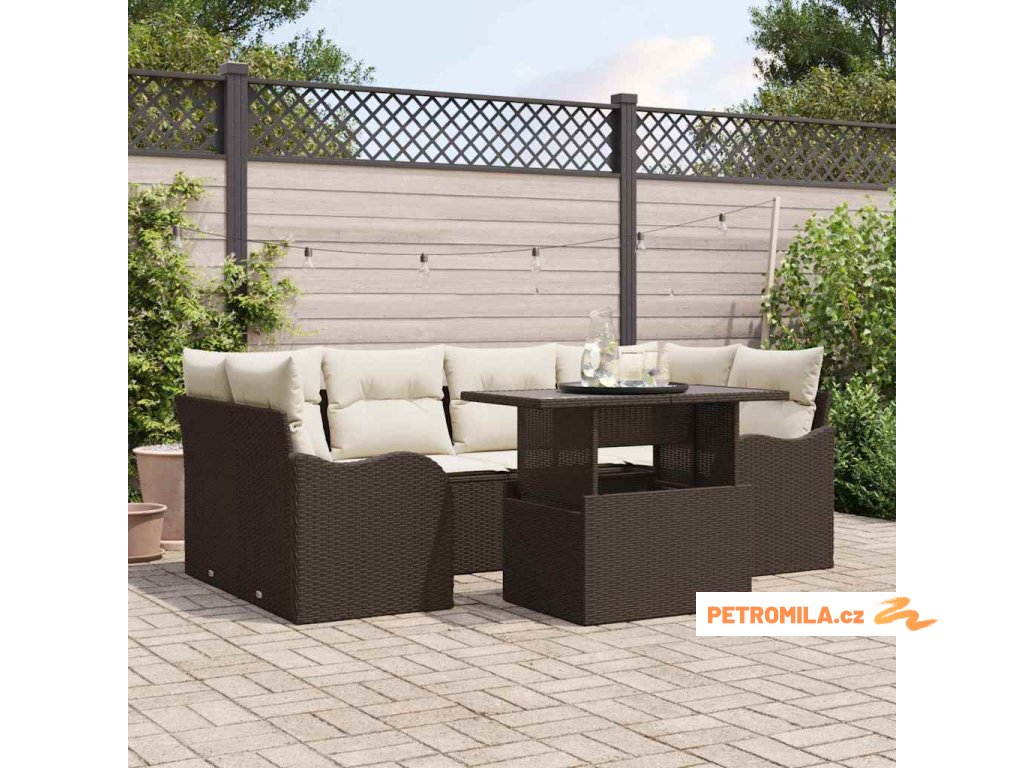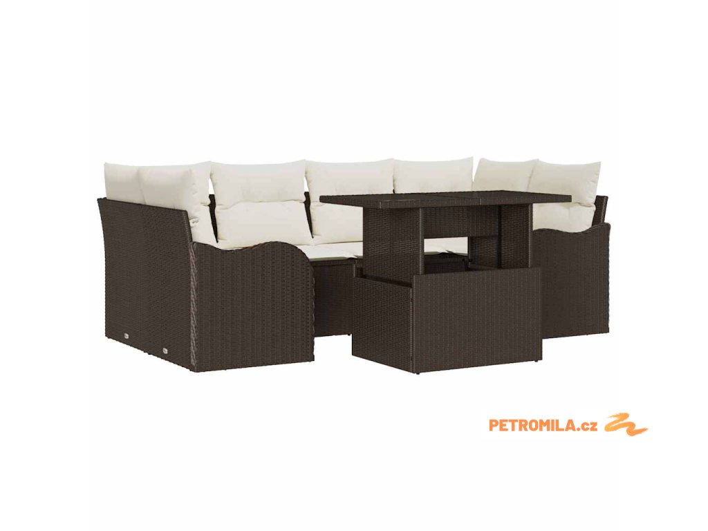 Sada zahradních pohovek s polštářem 7 pcs Hnědá Poly ratan