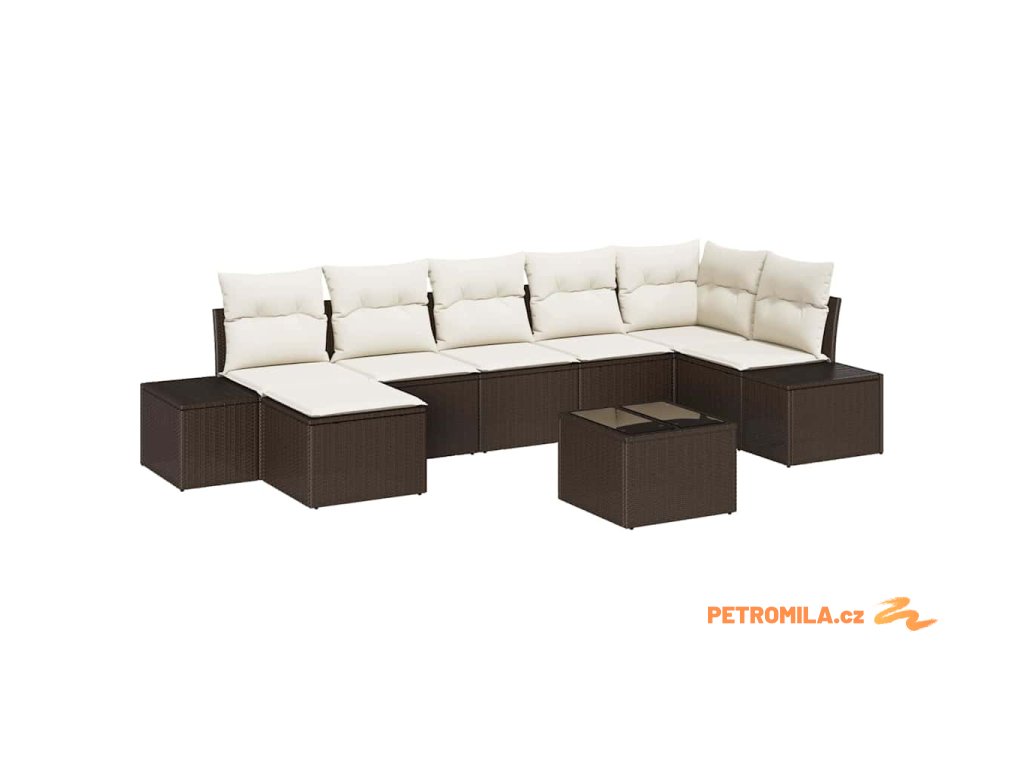Sada zahradních pohovek s polštářem 8 pcs Béžová Poly ratan