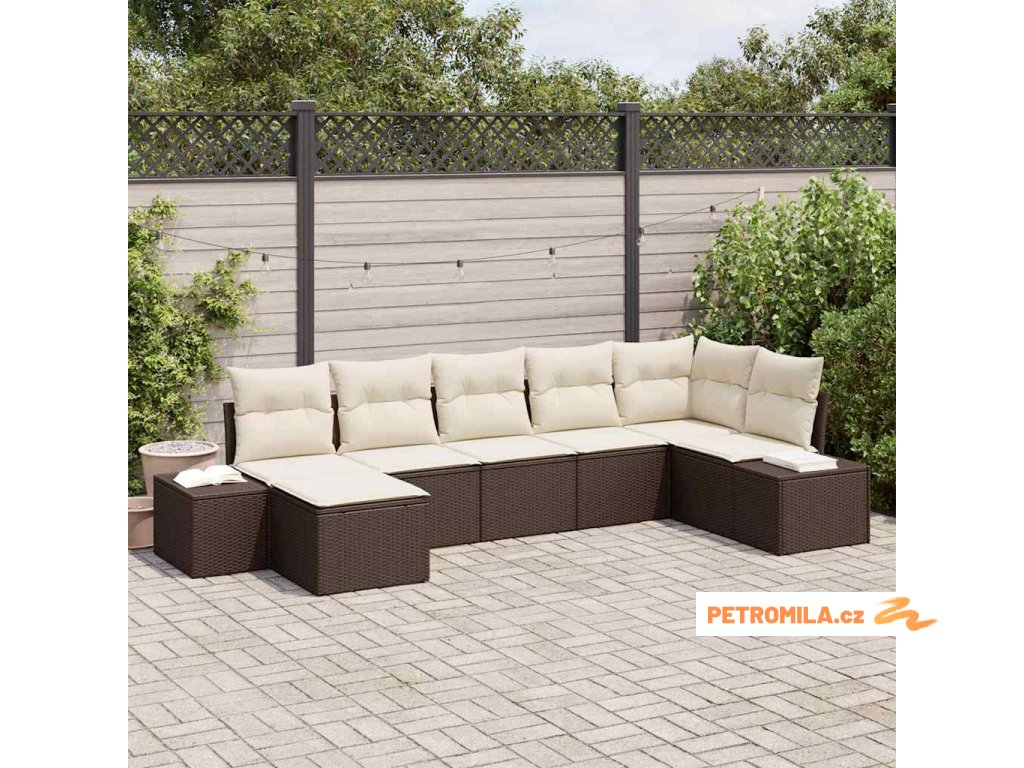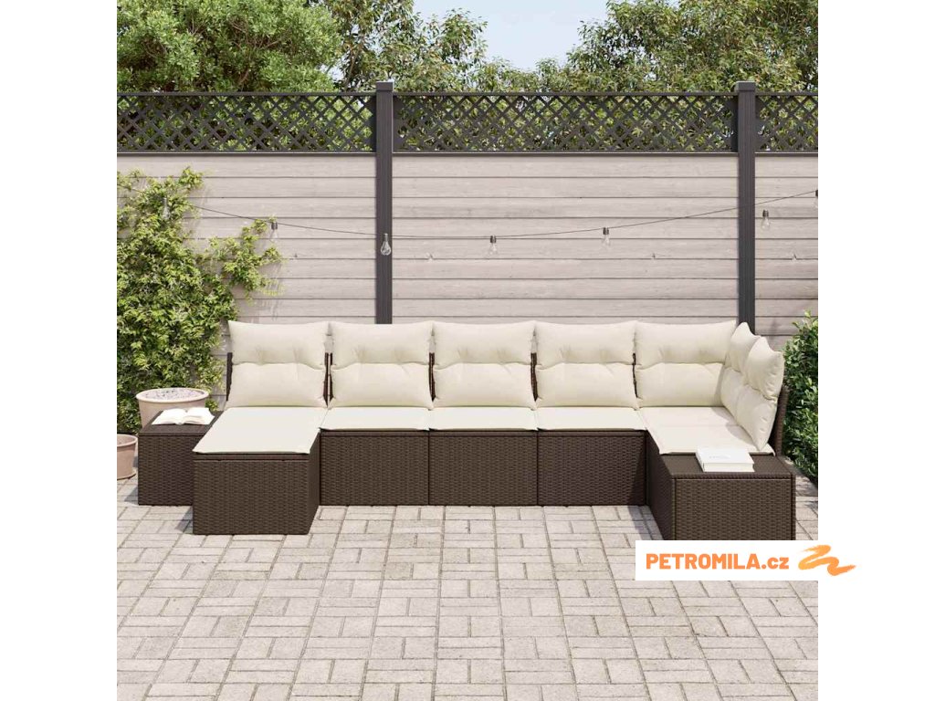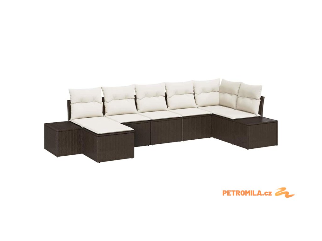 Sada zahradních pohovek s polštářem 7 pcs Hnědá polyratan