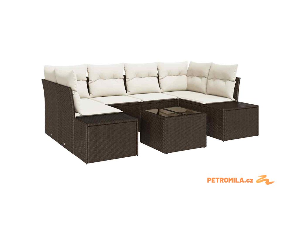 Sada zahradních pohovek s polštářem 7 pcs Hnědá polyratan