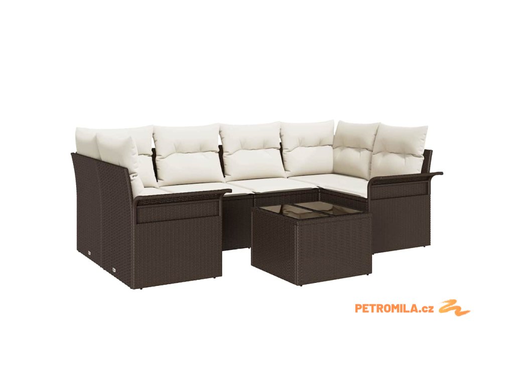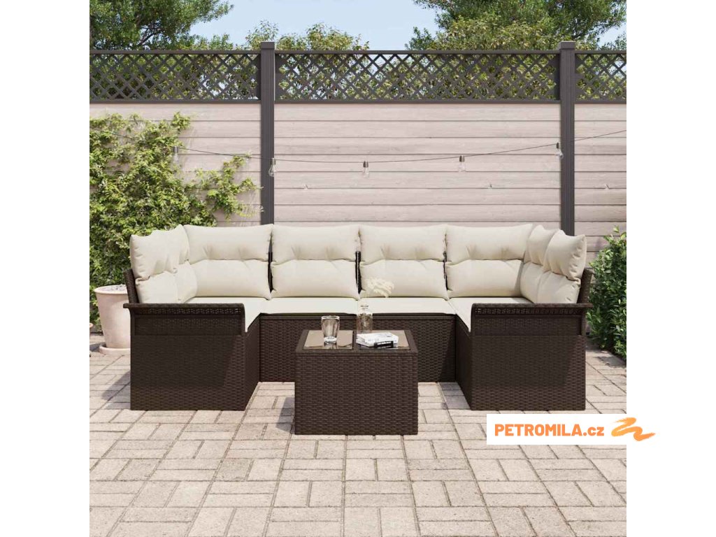 Sada zahradních pohovek s polštářem 7 pcs Hnědá polyratan