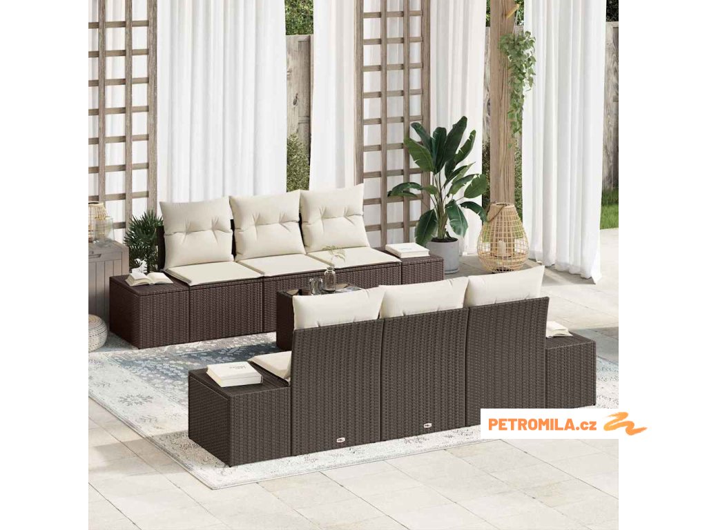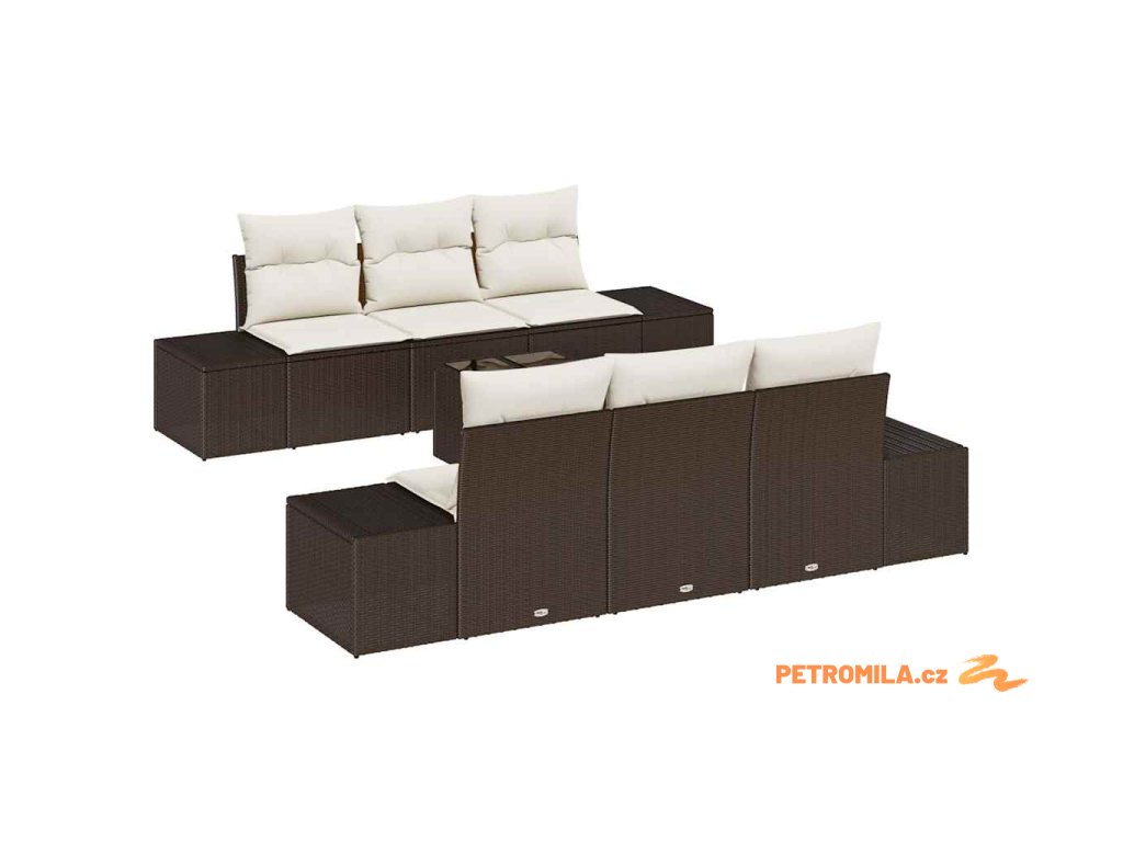 Sada zahradních pohovek s polštářem 7 pcs Hnědá polyratan