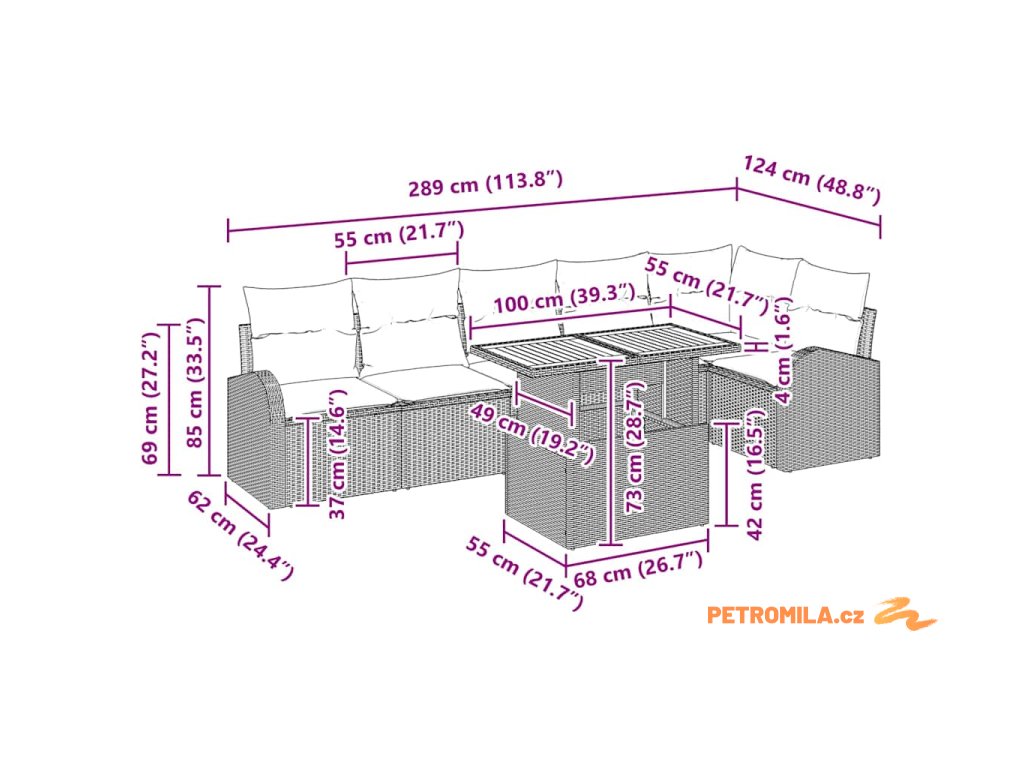 - Tipy na údržbu: O svoji soupravu se starejte zakrytím, když ji nepoužíváte, a otírejte ji vlhkým hadříkem, aby zůstala čistá. Při špatném počasí přeneste polštáře dovnitř, abyste je udrželi v dobrém stavu, takže tahle stylová souprava s vámi vydrží dlouho.