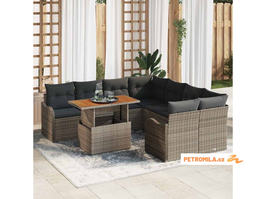 - Materiály: Tenhle zahradní sofa set je z polyratanu, což je známý materiál, který vydrží venkovní podmínky. Rám z práškově lakované oceli je pevný a stabilní. Desky z masivního akáciového dřeva dotvářejí přirozený a elegantní vzhled, což zaručuje roky stylu a užívání. Kombinace těchto materiálů znamená, že set je dost silný i při změnách počasí, a je skvělou volbou pro milovníky venkovního bydlení.