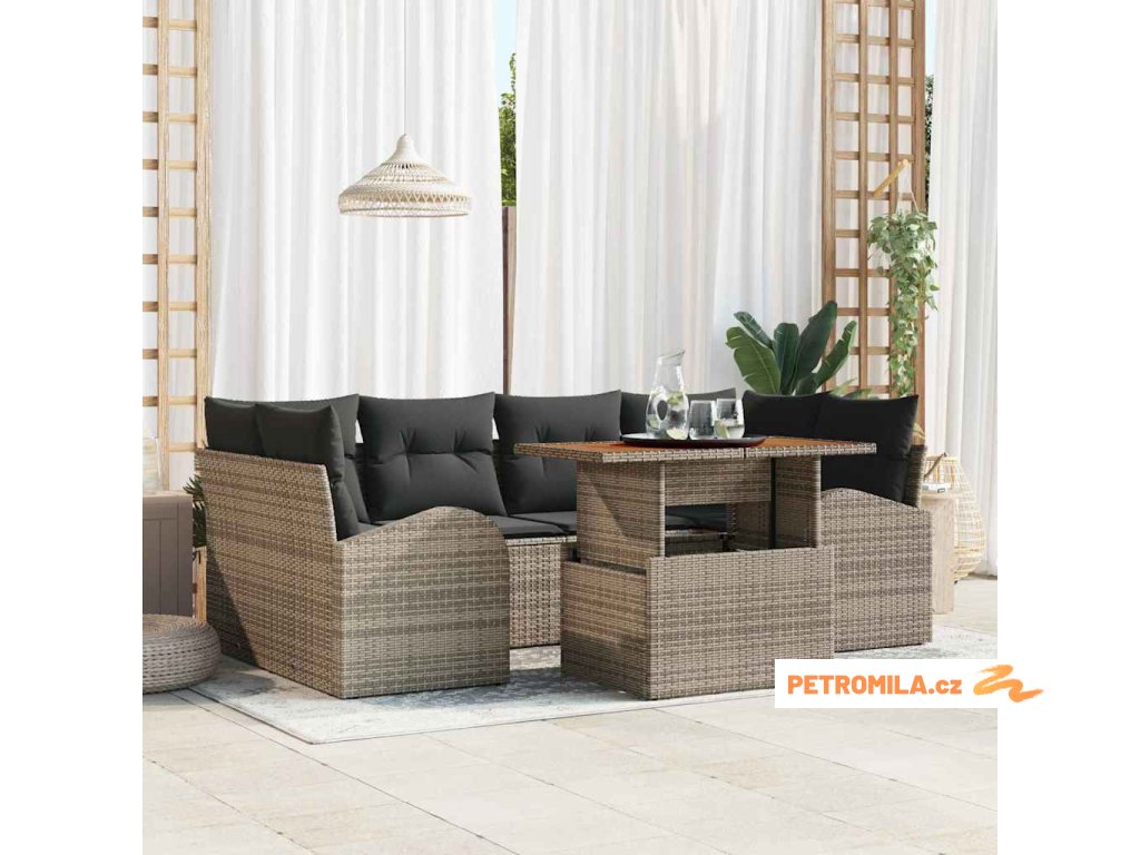 Sada zahradních pohovek s polštářem 7 pcs Šedá