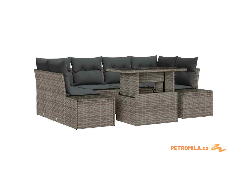 Sada zahradních pohovek s polštářem 7 pcs Šedá