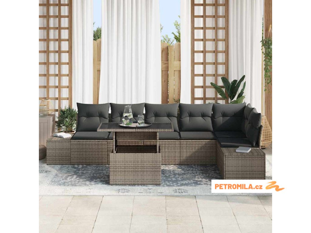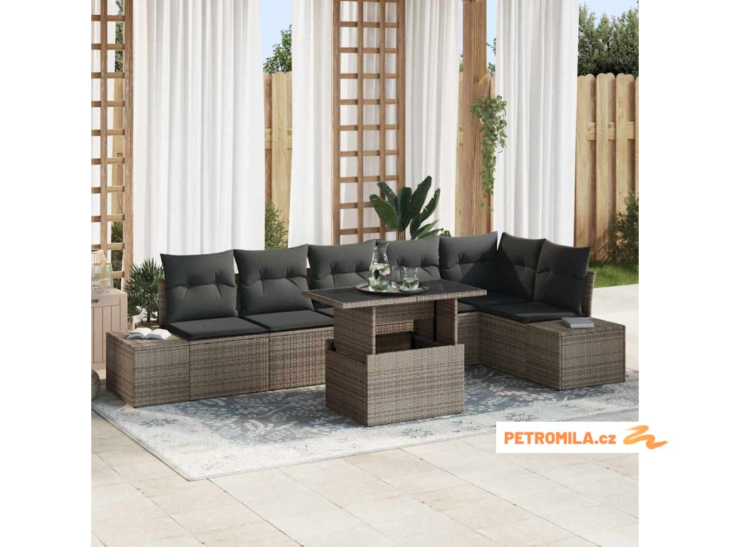 Sada zahradních pohovek s polštářem 7 pcs Šedá