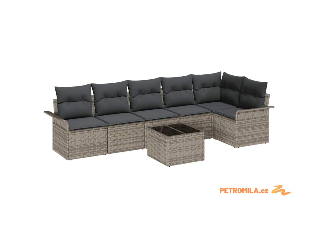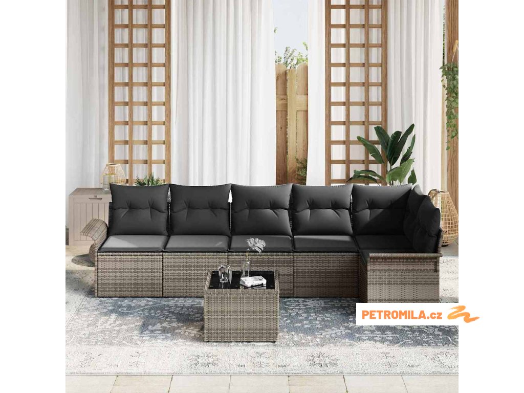 Sada zahradních pohovek s polštářem 7 pcs Šedá Poly ratan
