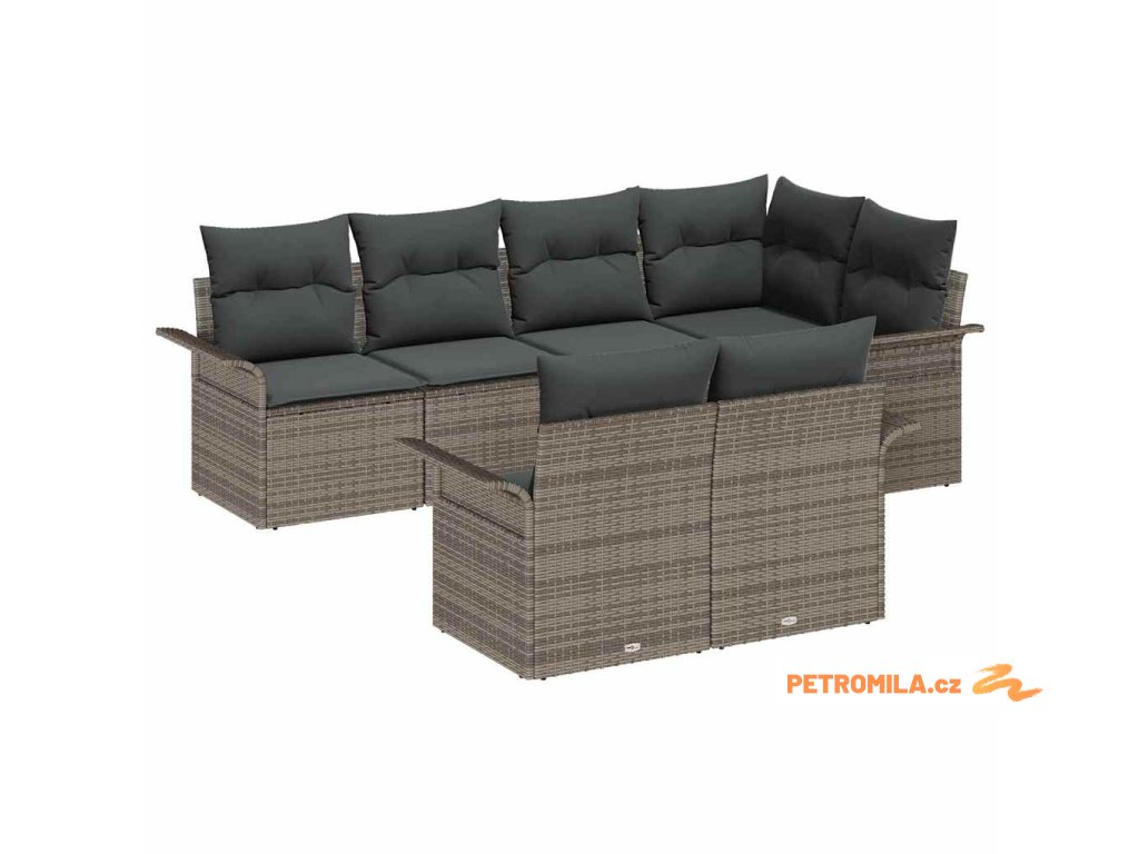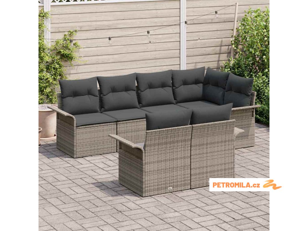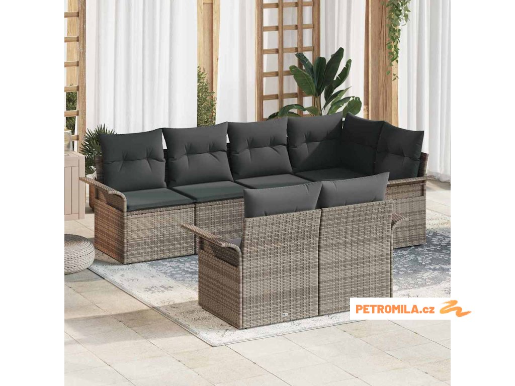 Sada zahradních pohovek s polštářem 7 pcs Šedá polyratan