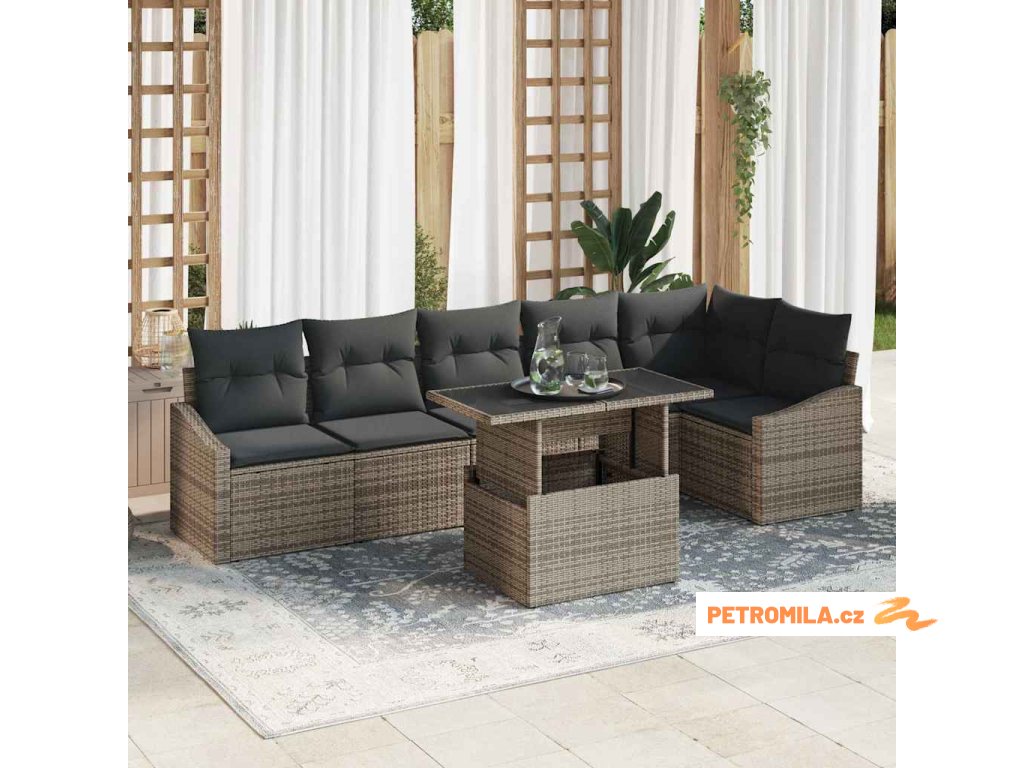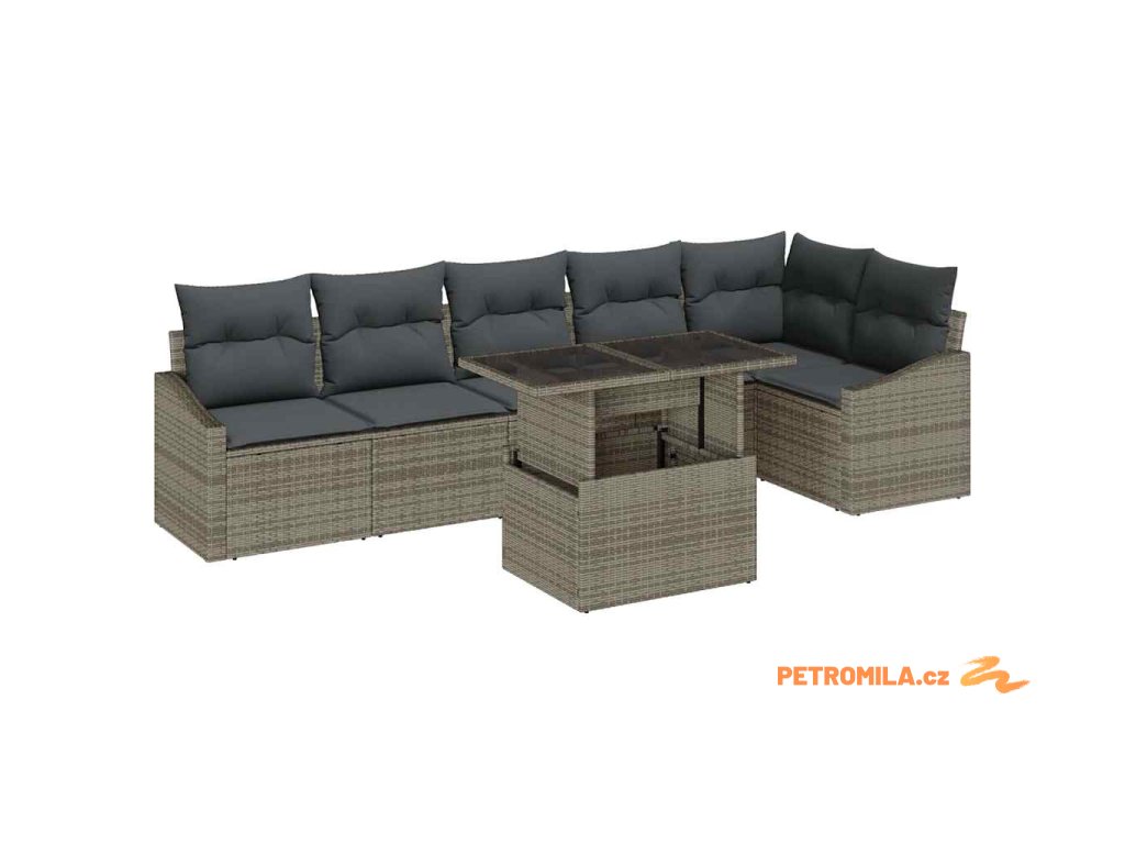 Sada zahradních pohovek s polštářem 7 pcs Šedá polyratan
