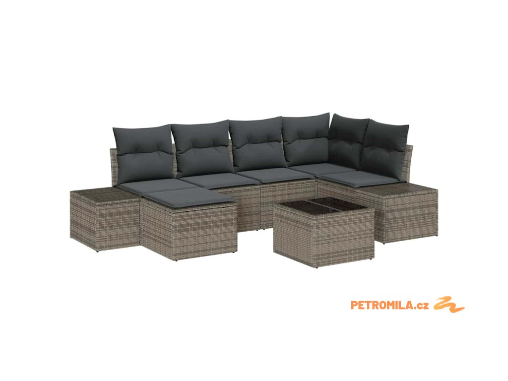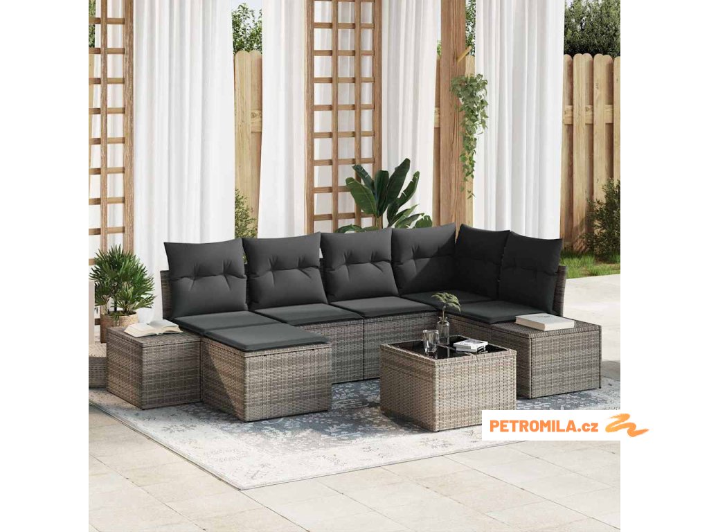 Sada zahradních pohovek s polštářem 7 pcs Šedá polyratan