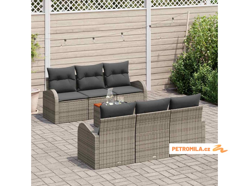 Sada zahradních pohovek s polštářem 7 pcs Šedá polyratan