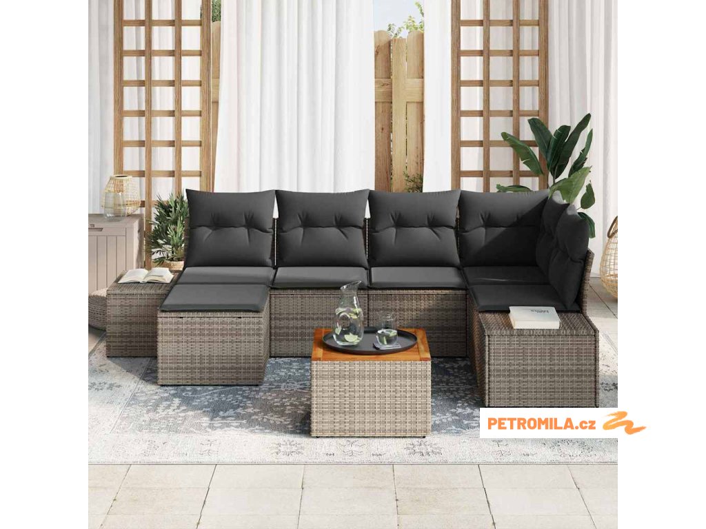Sada zahradních pohovek s polštářem 7 pcs Šedá polyratan