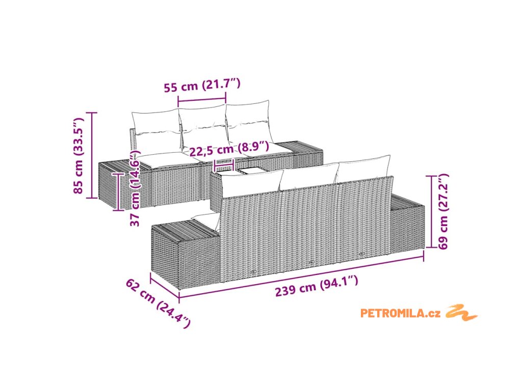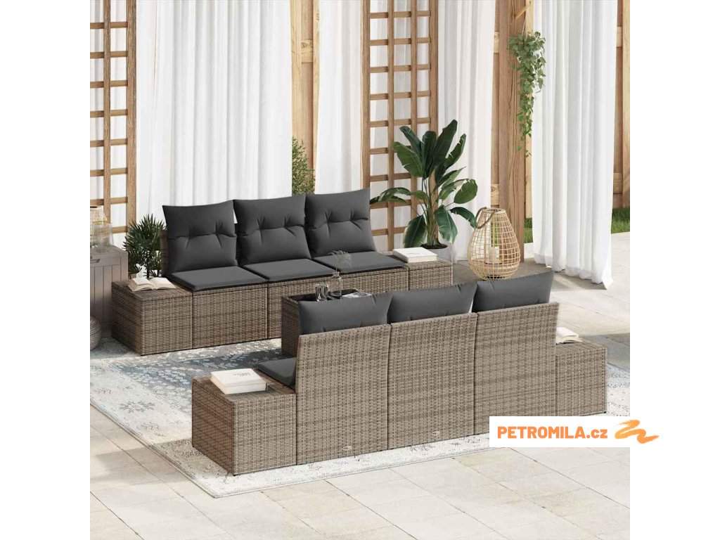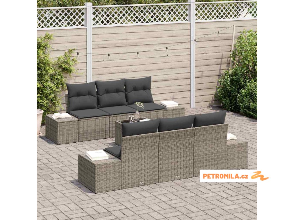 Sada zahradních pohovek s polštářem 7 pcs Šedá polyratan