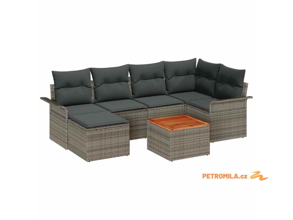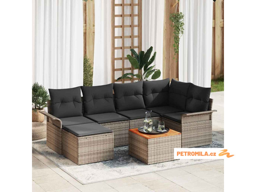 Sada zahradních pohovek s polštářem 7 pcs Šedá polyratan
