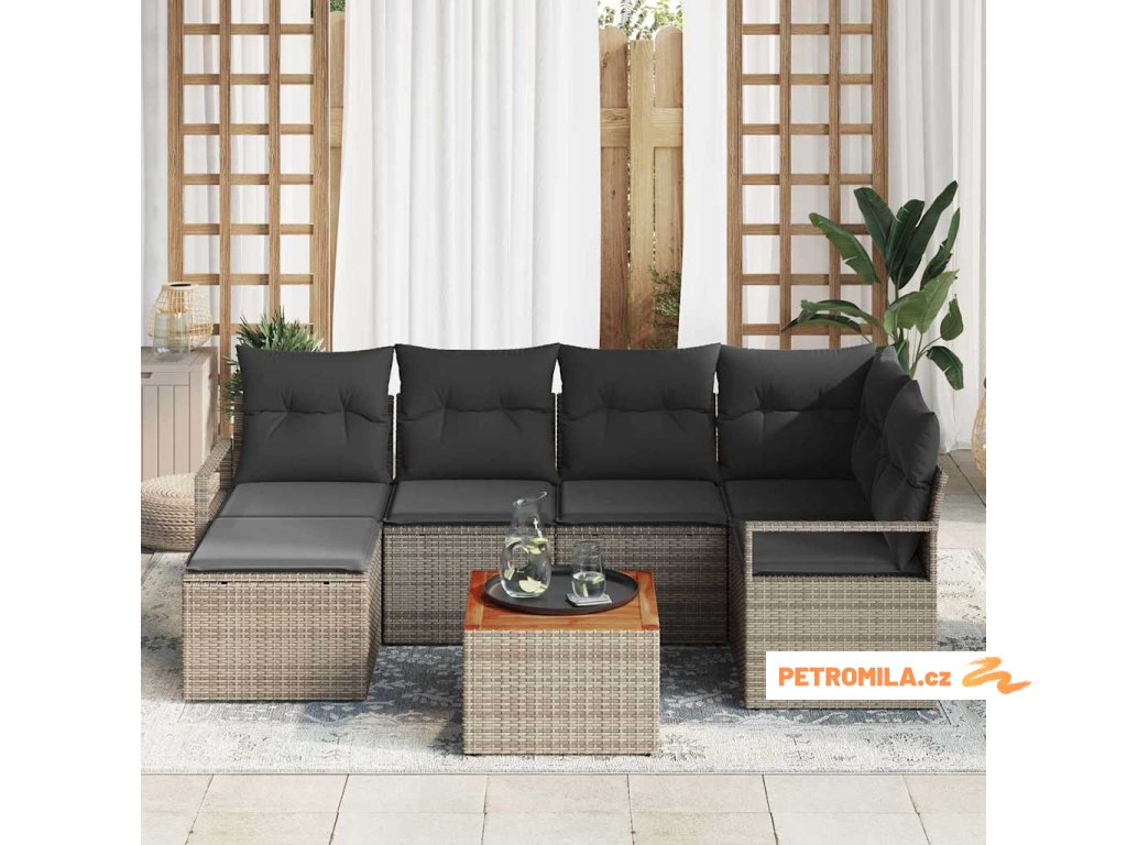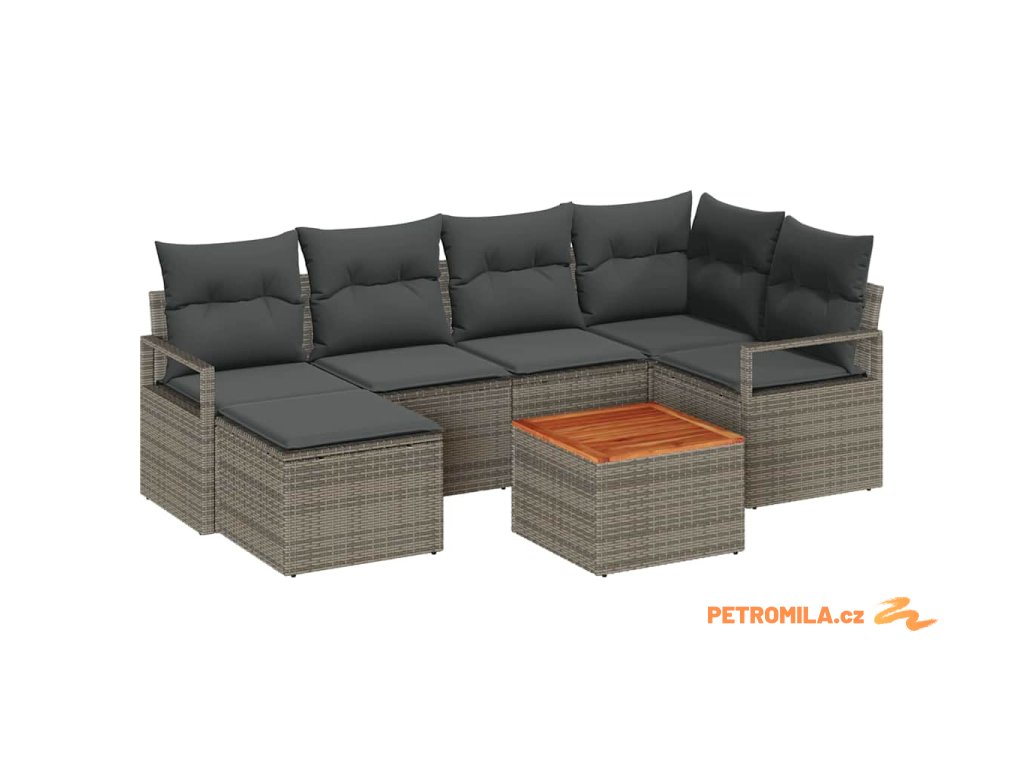 Sada zahradních pohovek s polštářem 7 pcs Šedá polyratan