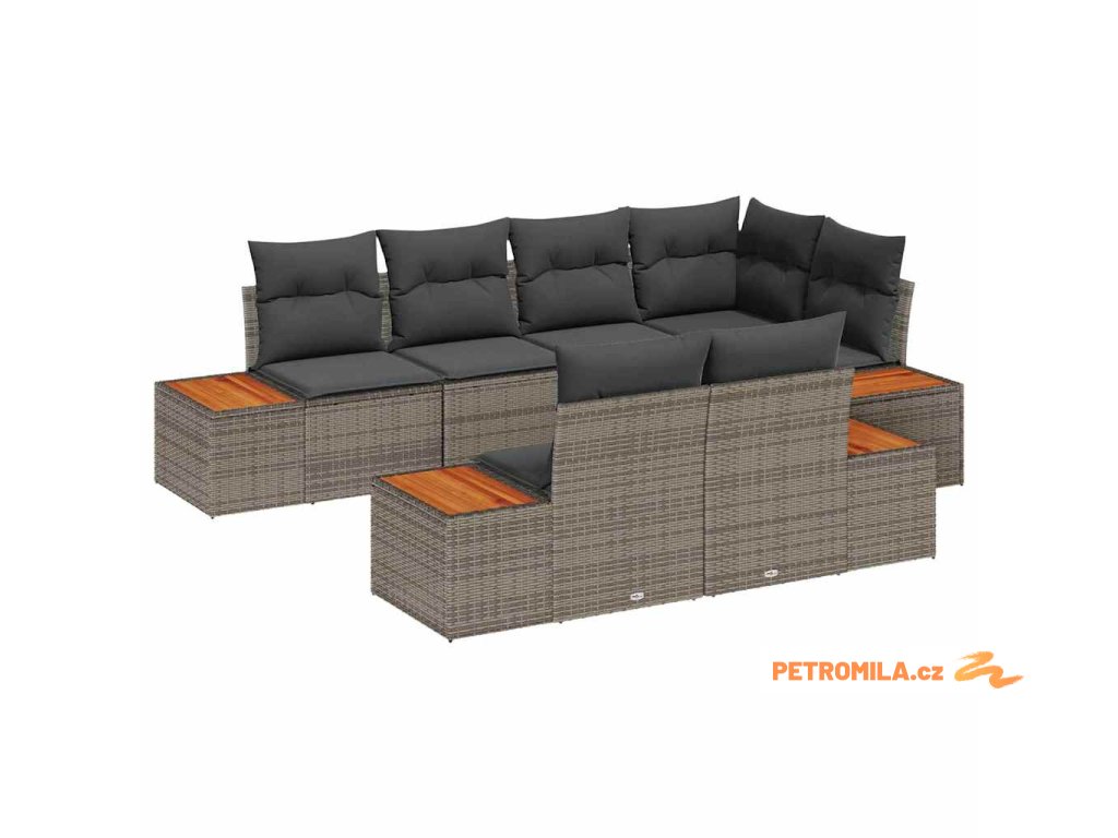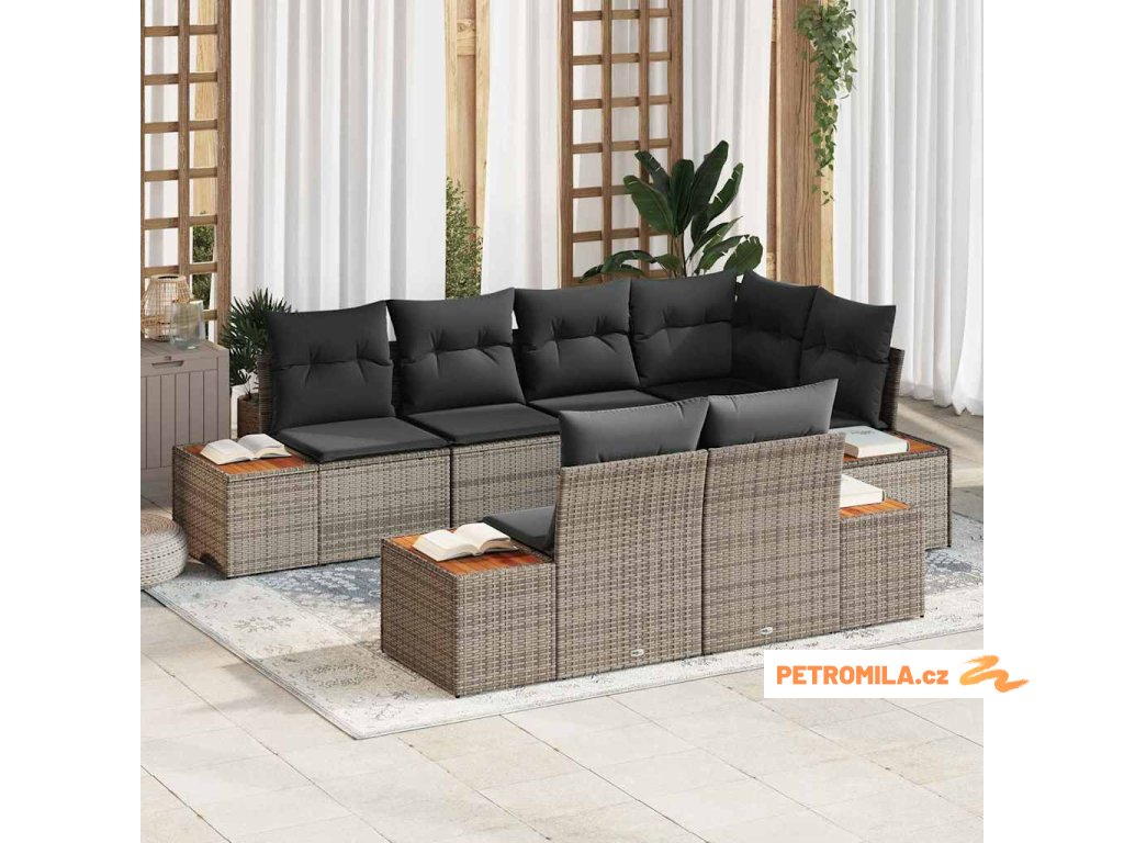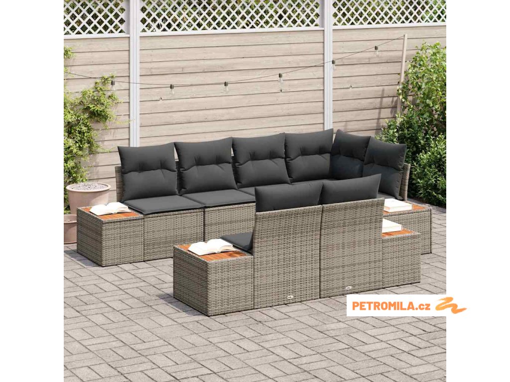 Sada zahradních pohovek s polštářem 7 pcs Šedá polyratan