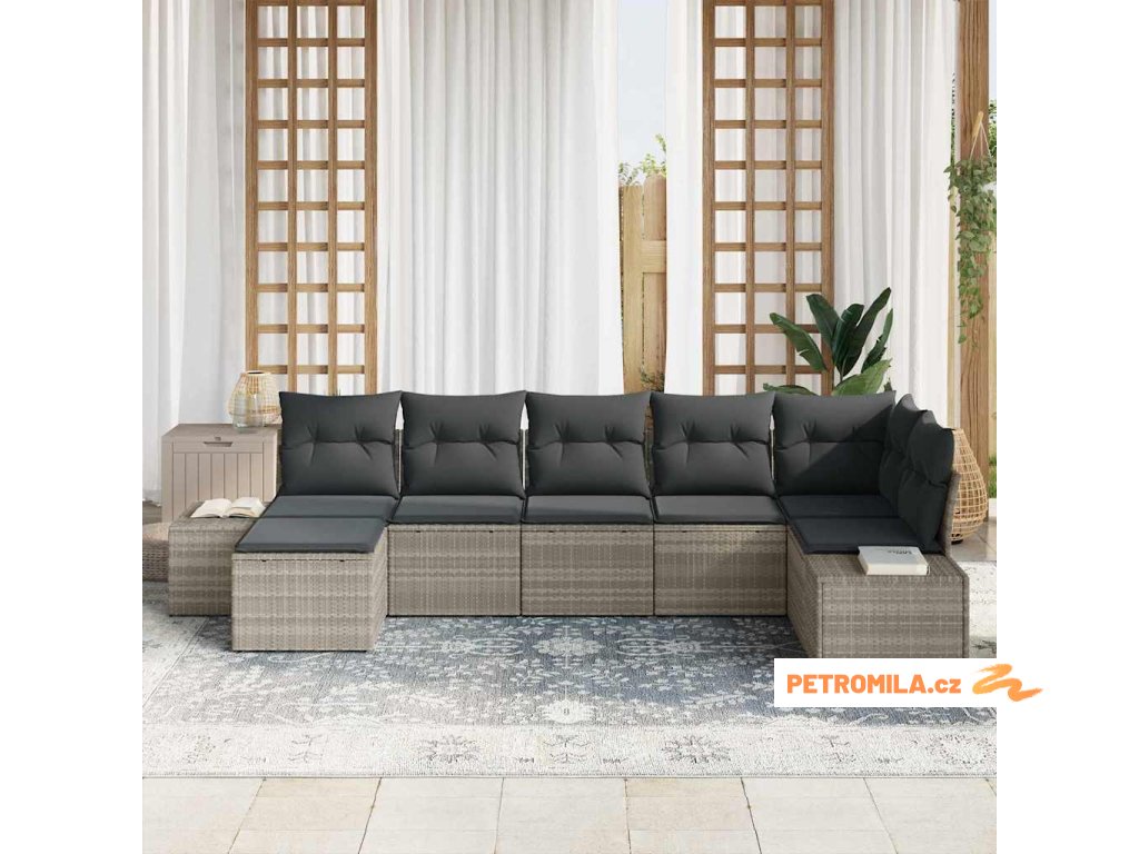 Sada zahradních pohovek s polštářem 8 pcs Šedá Poly ratan